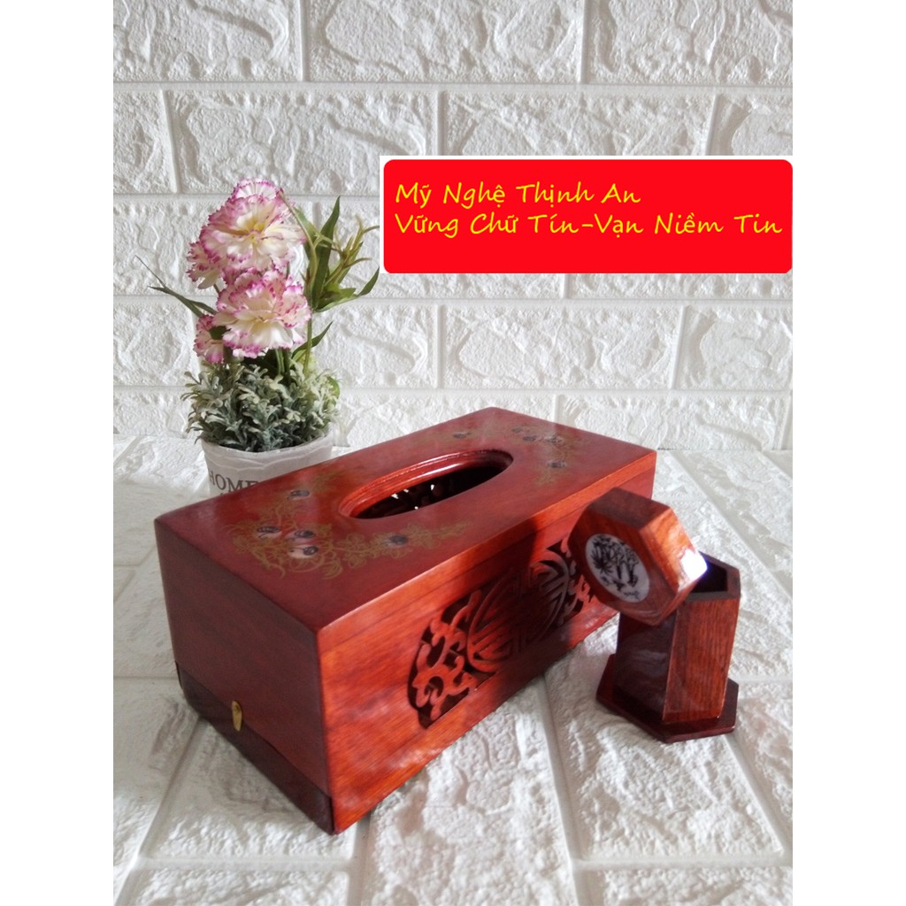 Nhà cửa & Đời sống > Sắp xếp nhà cửa > Hộp khăn giấy || Hộp khăn giấy ăn kèm ống tăm gỗ hương cao cấp hoa văn chữ nhật CHGCN01Còn hàng