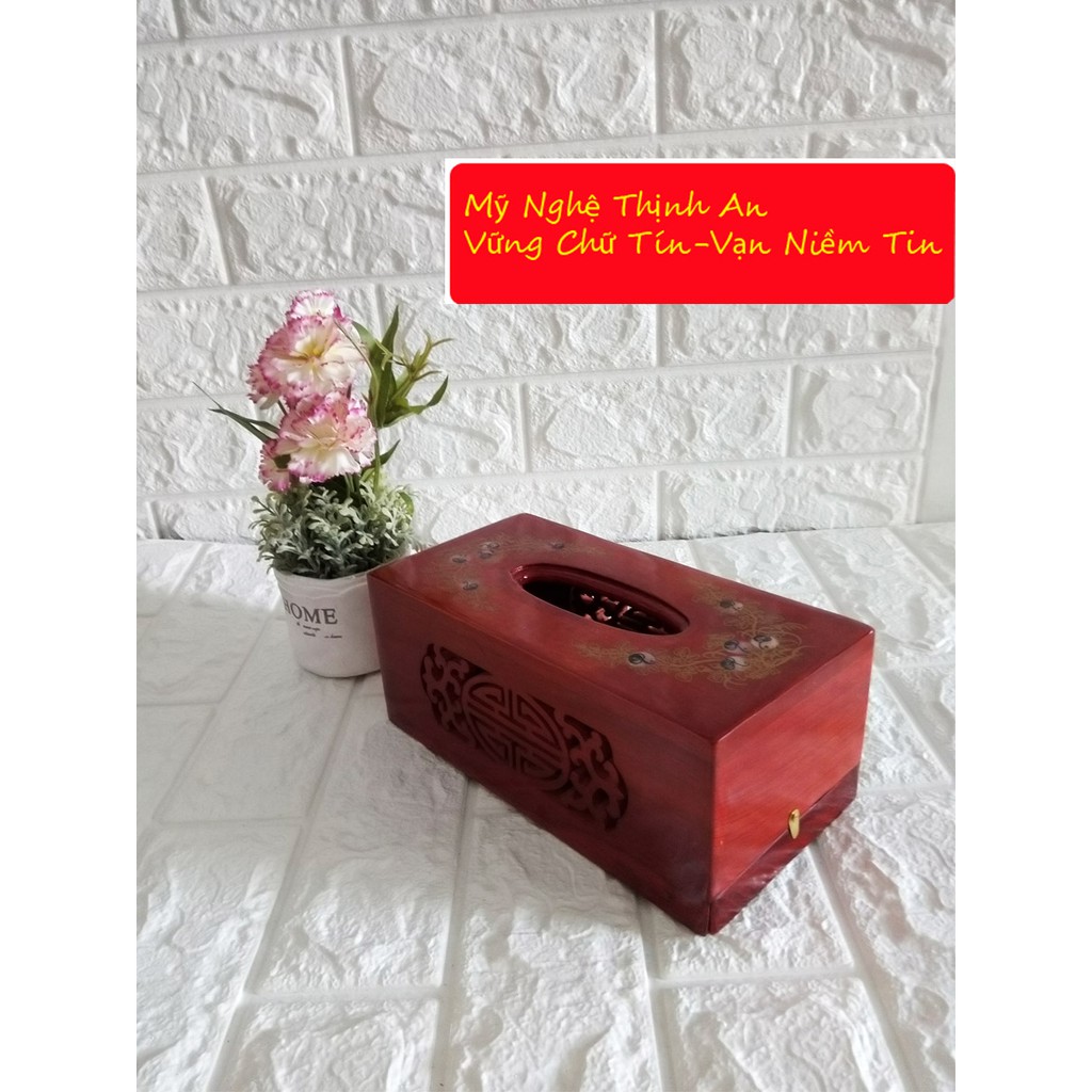 Nhà cửa & Đời sống > Sắp xếp nhà cửa > Hộp khăn giấy || Hộp khăn giấy bằng gỗ hương cao cấp lọng hoa văn chữ nhật HGCN01Còn hàng