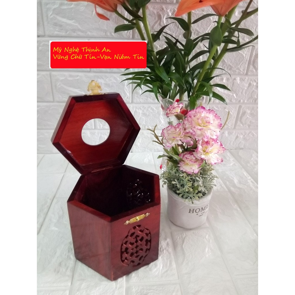 Chiếc hộp được làm chắc chắn, linh hoạt có đế rời bên dưới ,chất liệu gỗ hương nam phi tự nhiên ,được trạm lọng hoa văn vô cùng cầu kỳ tinh xảo từ đôi bàn tay khéo léo của các nghệ nhân làng nghề Việt.Hộp khăn ăn này có thể là món quà tặng ý nghĩa và độc đáo gửi tới những người thân thiết xa gần trong và ngoài nước hay đối tác làm ăn.Sử dụng các sản phẩm thủ công mỹ nghệ cũng là cách ủng hộ cho các sản phẩm tôn vinh nét đẹp Việt Nam nói chung,và các làng nghề truyền thống đang dần mai một trên khắp làng quê Việt nói riêng.