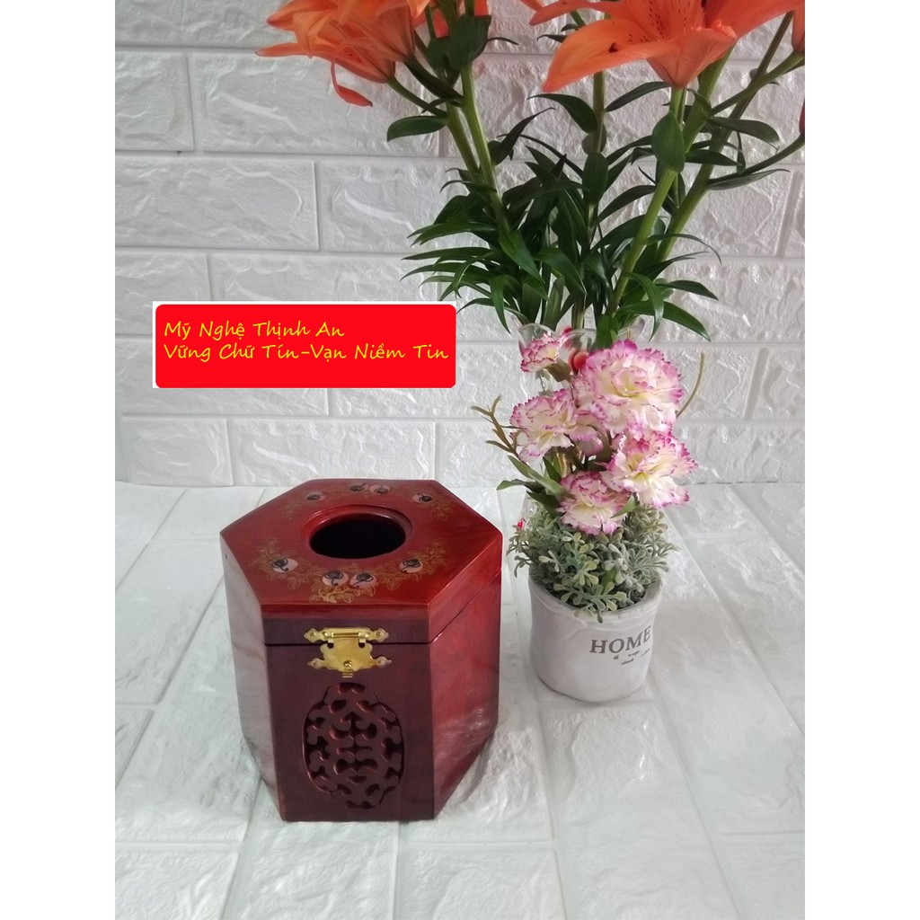 Hầu hết tất cả các gia đình đều sở hữu ít nhất một hộp đựng giấy ăn trong nhà. Nhưng gia chủ còn muốn đồ vật của mình sử dụng luôn phải thể hiện được nét cá tính, sự sang trong và gu thẩm mỹ của chính gia đình mình. Nếu bạn muốn tôn lên nét sang trọng, khả năng lựa chọn đồ dùng tinh tế, gu thẩm mỹ đặc biệt, lại đảm bảo an toàn cho sức khỏe thì chỉ một hộp đựng giấy ăn bằng gỗ hương cao cấp loại gỗ nam phi của chúng tôi là sự lựa chọn hoàn hảo.