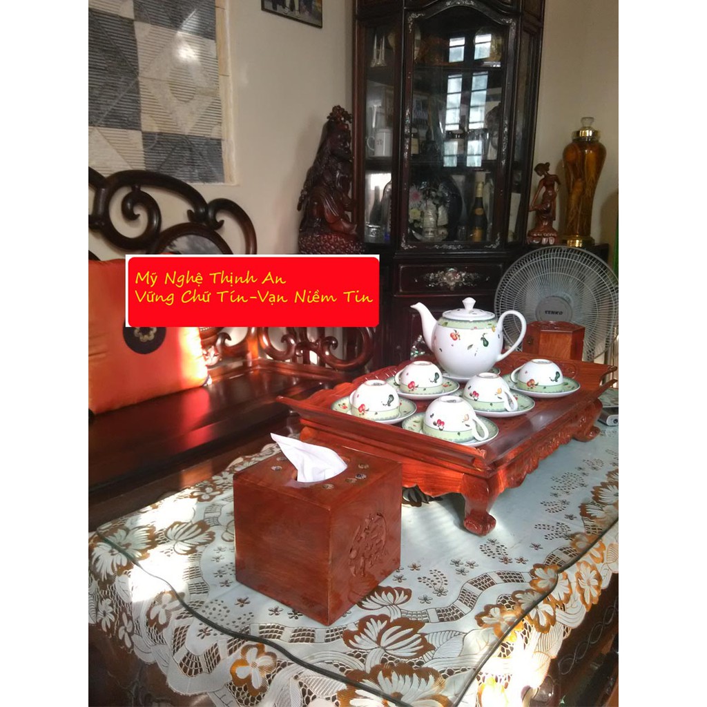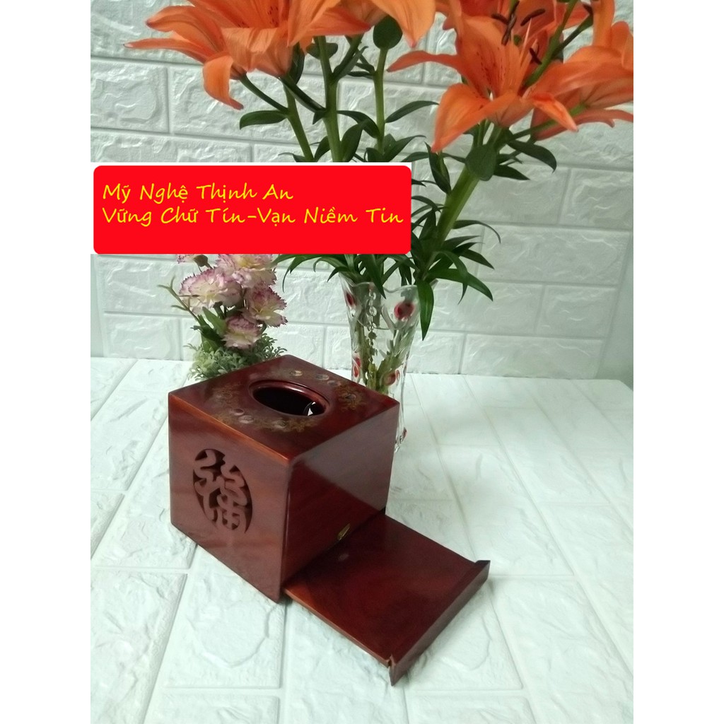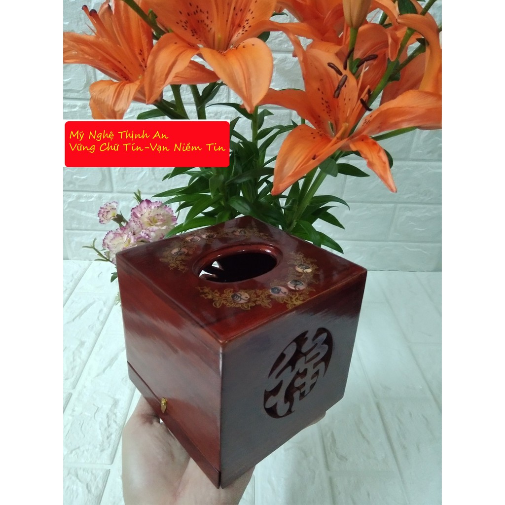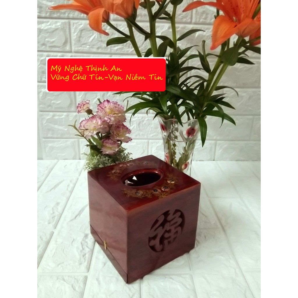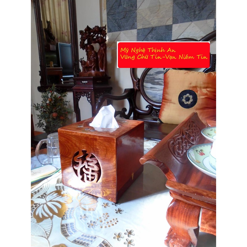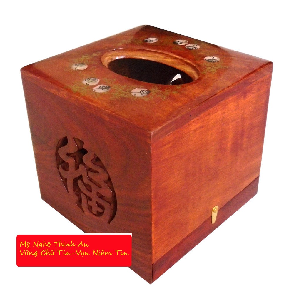 Nhà cửa & Đời sống > Sắp xếp nhà cửa > Hộp khăn giấy || Hộp khăn giấy bằng gỗ hương ta đỏ cao cấp lọng chữ phúc vuông HGV01Còn hàng