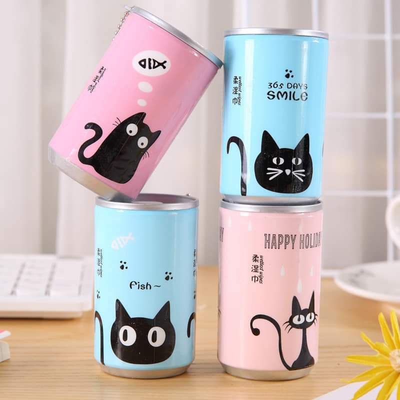Dạng lon nước giải khát, có lỗ khui rút khăn giấy ướt rất độc đáo và đáng yêu.