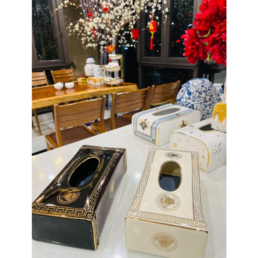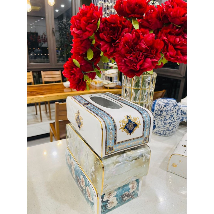 hộp khăn giấy bằng sứ cao cấp. hộp đựng giấy cao cấp bằng sứ phong cách châu âu.