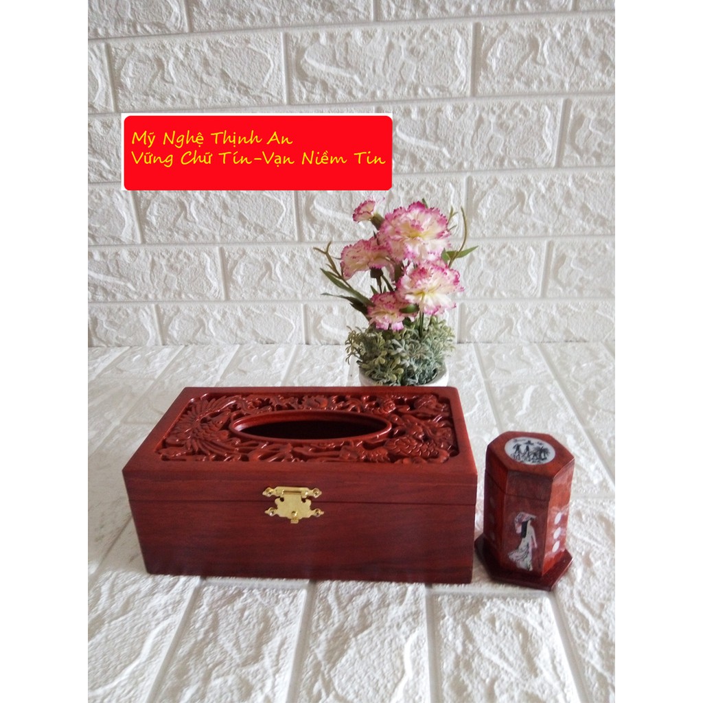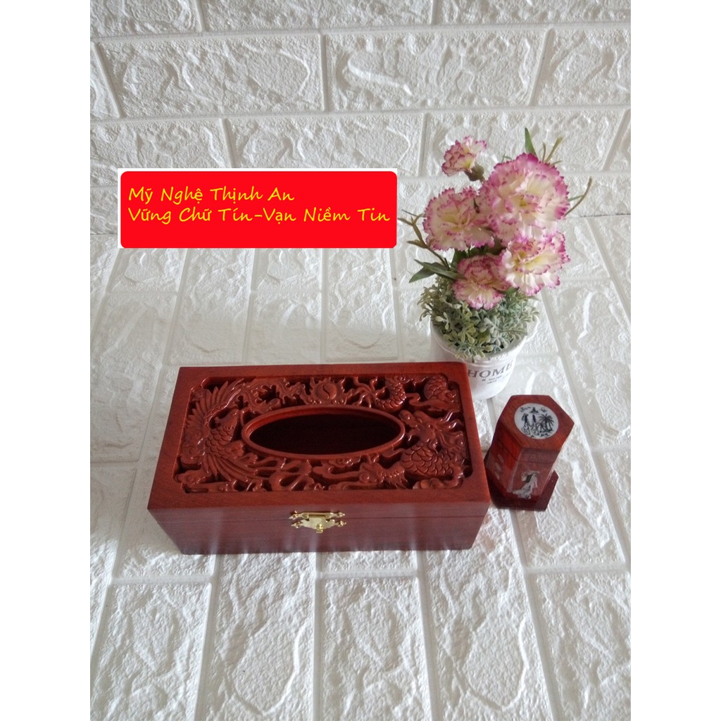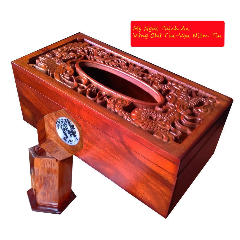 Nhà cửa & Đời sống > Sắp xếp nhà cửa > Hộp khăn giấy || Hộp khăn giấy chữ nhật gỗ hương mặt trạm rồng phượng kèm hộp tămCòn hàng