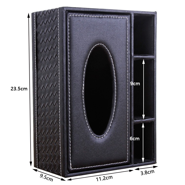 Hộp khăn giấy da có 3 ngăn tiện dụng ,vừa đơn giản nhưng đem lại hiệu quả cao, an toàn và tiện lợi 23.5x9.5x15cm