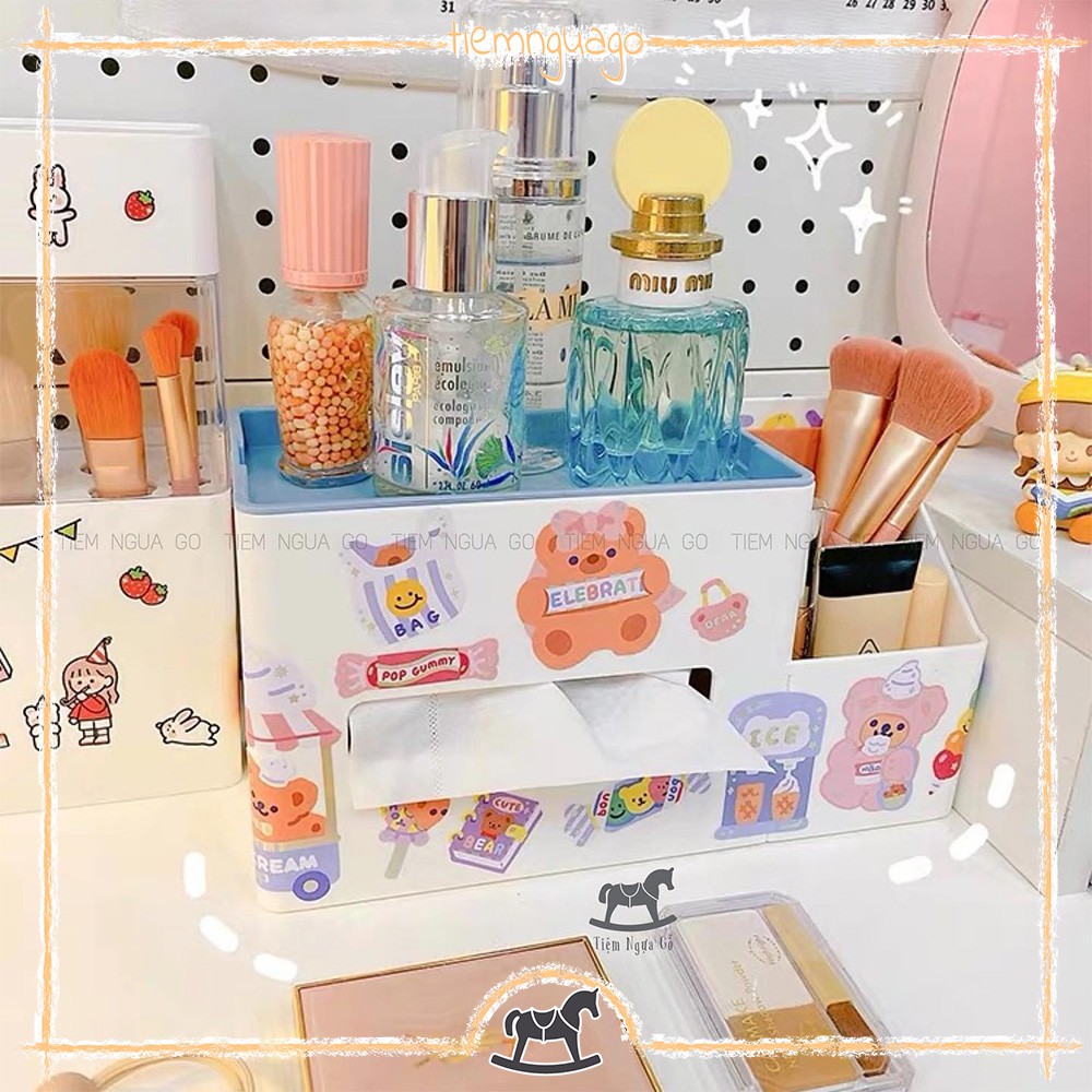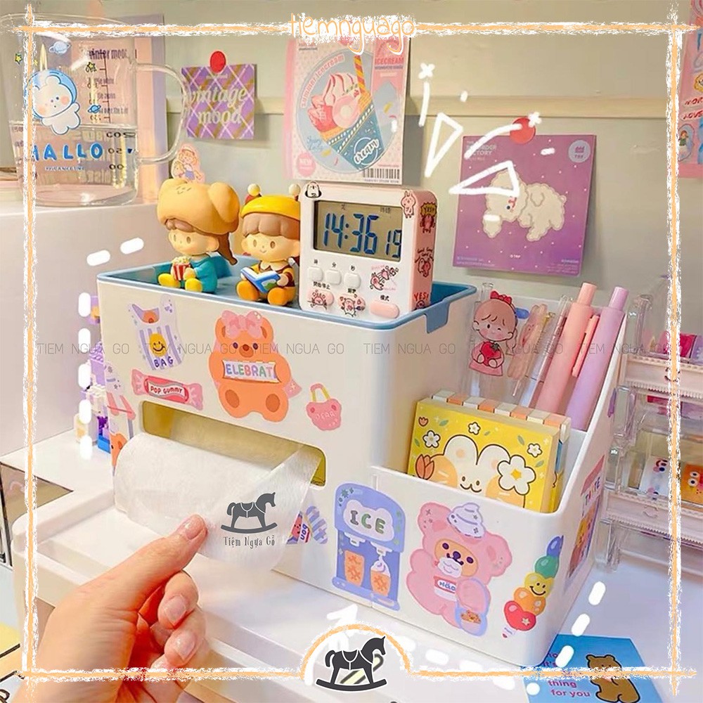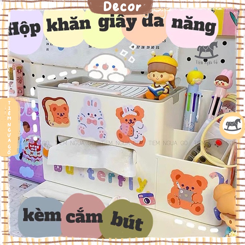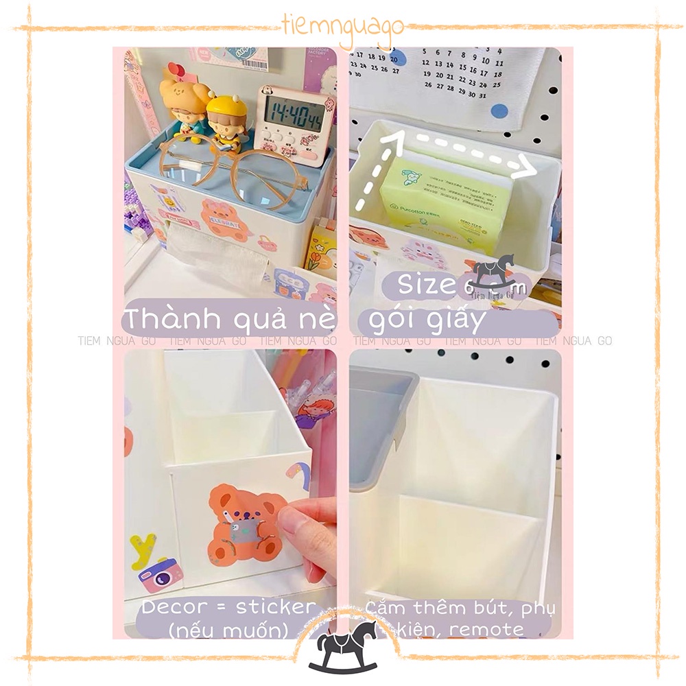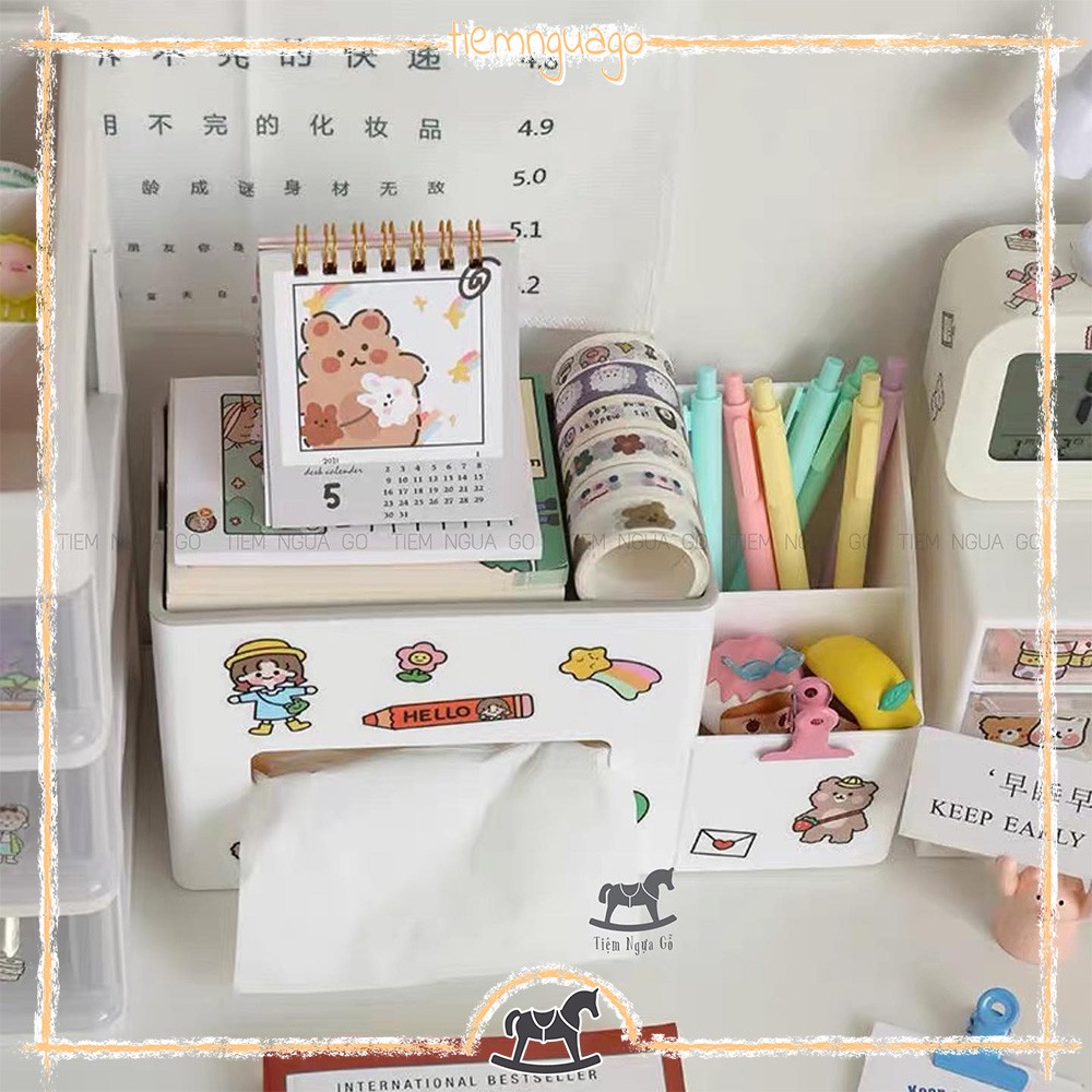 Hộp Khăn Giấy Đa Năng Kèm Cắm Bút Decor, TrangTrí Bàn Học - Tiệm Ngựa Gỗ