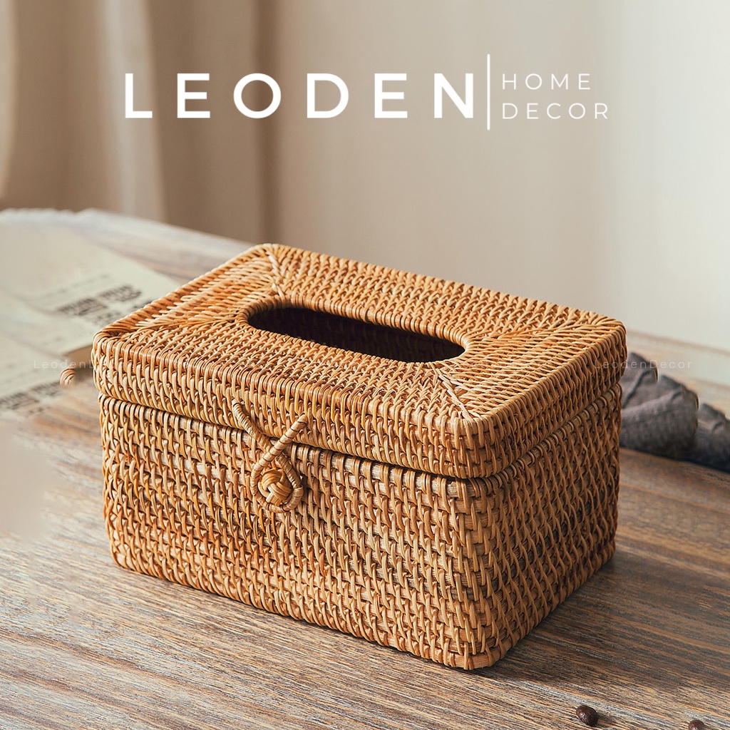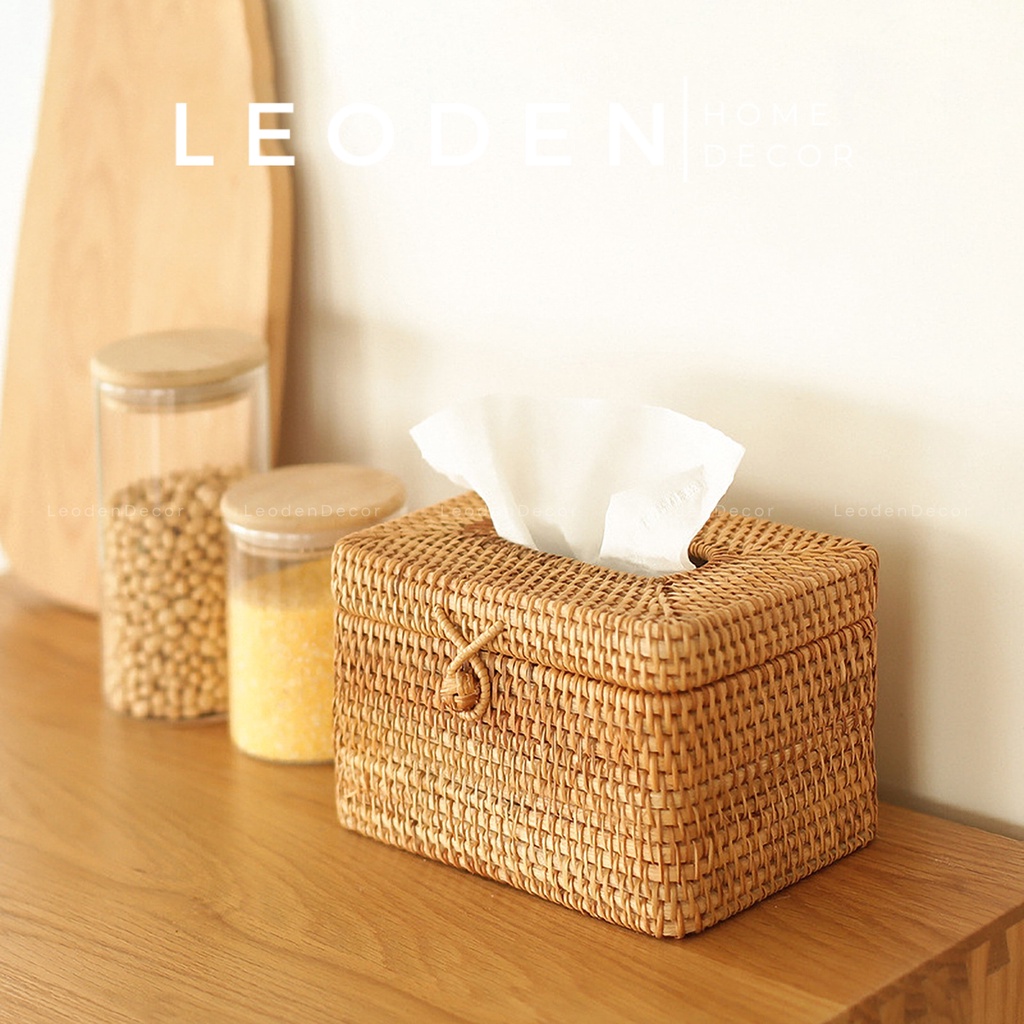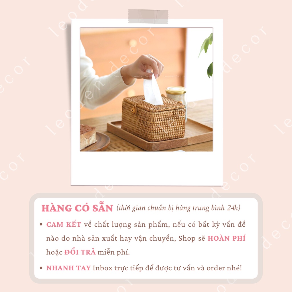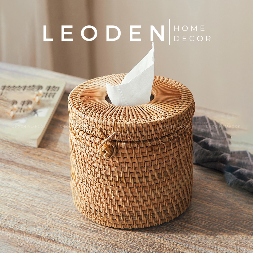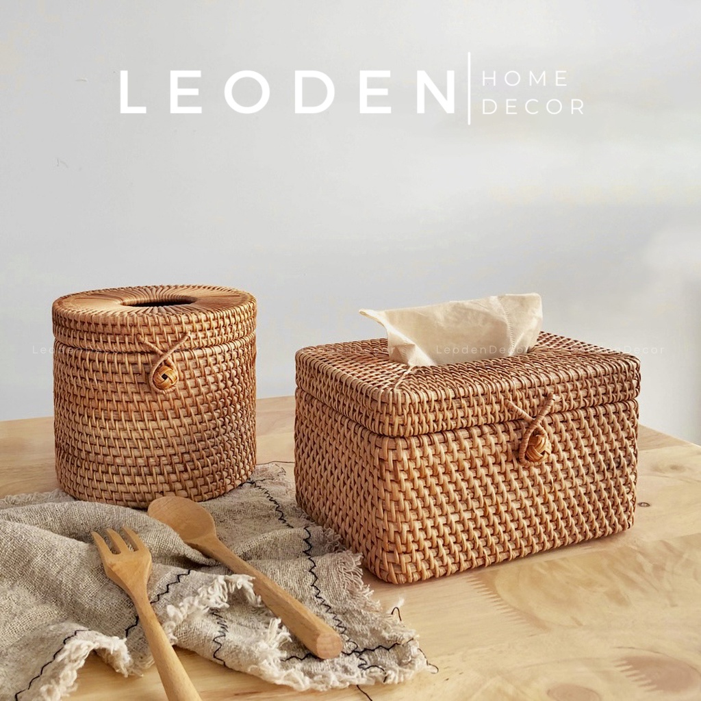 Hộp đựng khăn giấy để bàn bằng mây hình hộp sang trọng, hộp đựng giấy ăn decor hình tròn -LEODEN DECOR✅ CAM KẾT SẢN PHẨM: