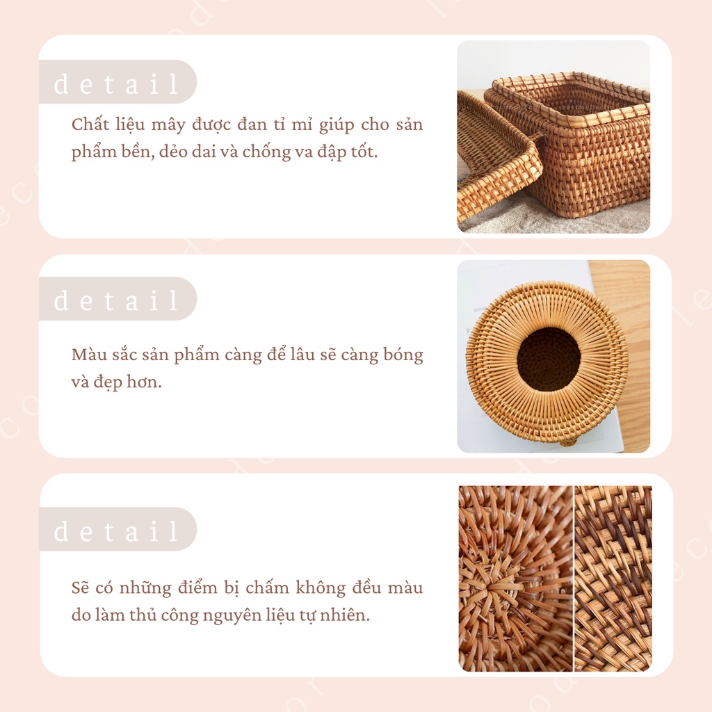 Giới thiệu Hộp khăn giấy để bàn bằng mây hình hộp sang trọng, hộp đựng giấy ăn decor hình tròn -LEODEN DECOR