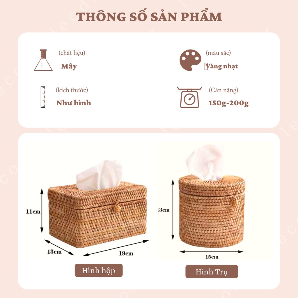 Nhà cửa & Đời sống > Sắp xếp nhà cửa > Hộp khăn giấy || Hộp khăn giấy để bàn bằng mây hình hộp sang trọng, hộp đựng giấy ăn decor hình tròn -LEODEN DECORCòn hàng