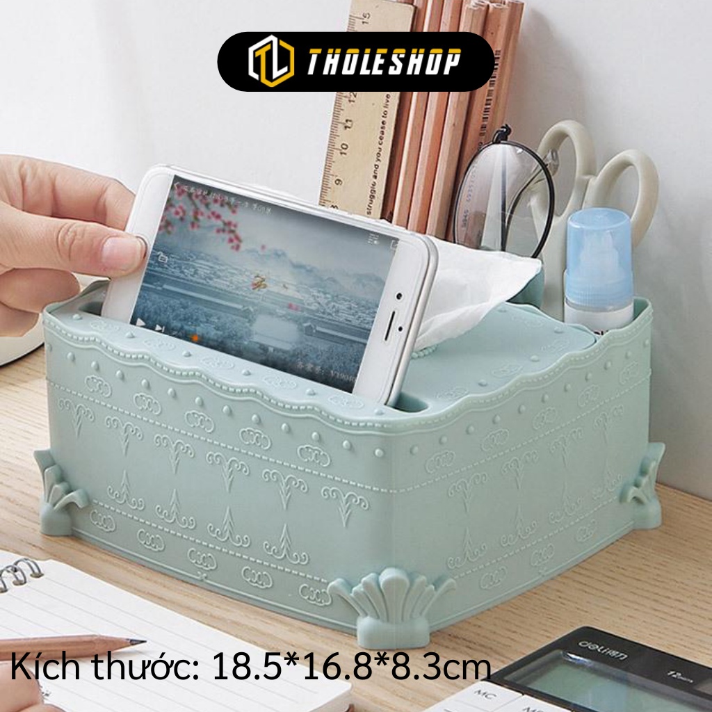 Hộp Khăn Giấy Để Bàn - Hộp Đựng Giấy Ăn Có Ngăn Để Đồ Và Điện Thoại Tiện Dụng 8471