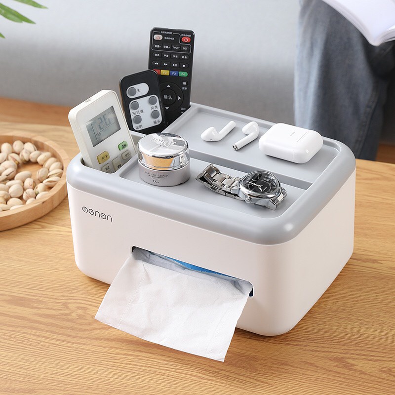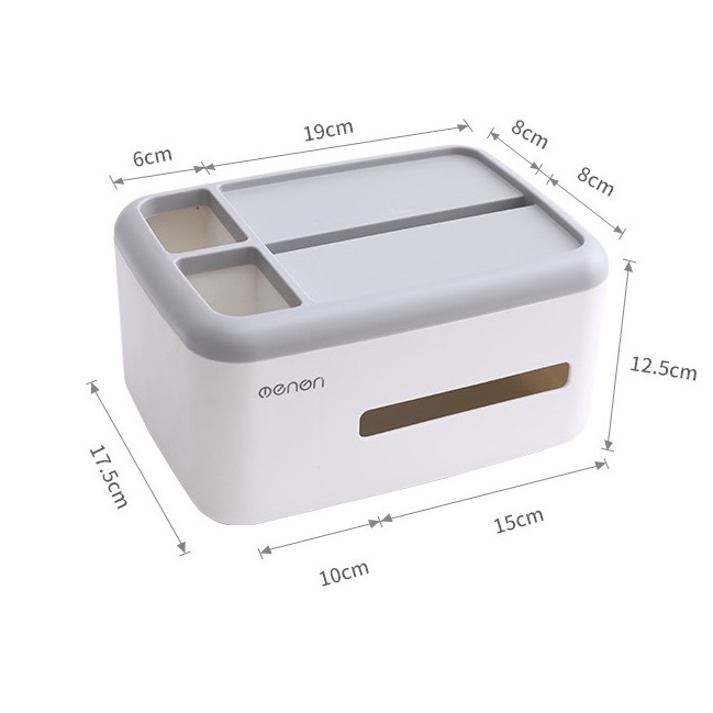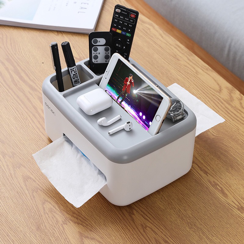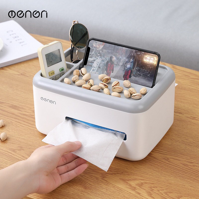 Hộp khăn giấy để giấy ăn hai cửa lấy giấy tiện dụng chất liệu nhựa ABS siêu bền, có khe để điện thoại và đồ tiện lợi