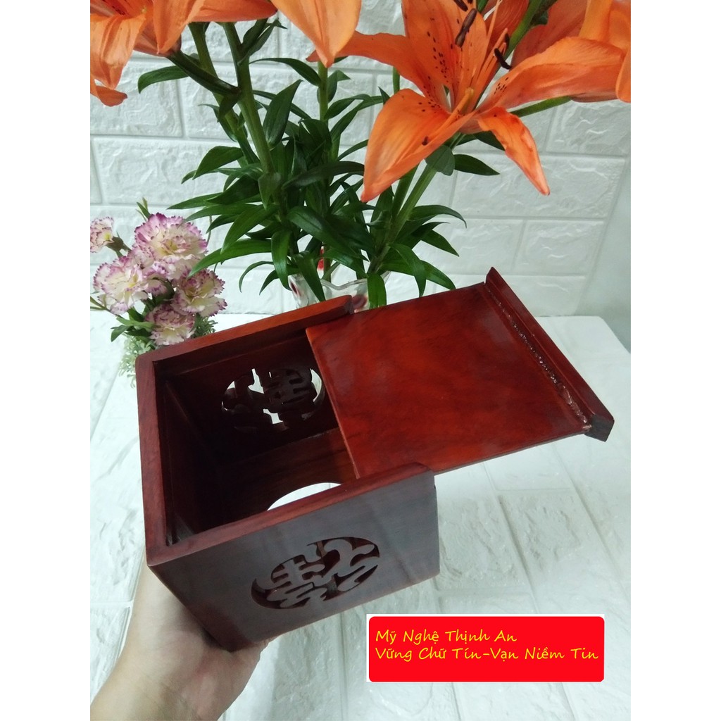 Nhà cửa & Đời sống > Sắp xếp nhà cửa > Hộp khăn giấy || Hộp khăn giấy gỗ hương ta đỏ lọng chữ phúc vuông kèm ống tăm CGV01Còn hàng
