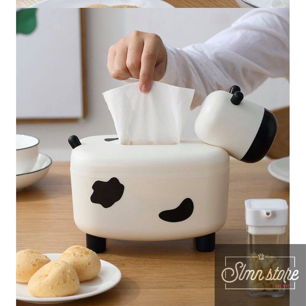 Nhà cửa & Đời sống > Sắp xếp nhà cửa > Hộp khăn giấy || Hộp khăn giấy hình bò sữa để bàn, kèm đựng tăm tiền lợi hộp đựng tăm hình bò sữa 2 trong 1. SD1- BoSua2in1Còn hàng