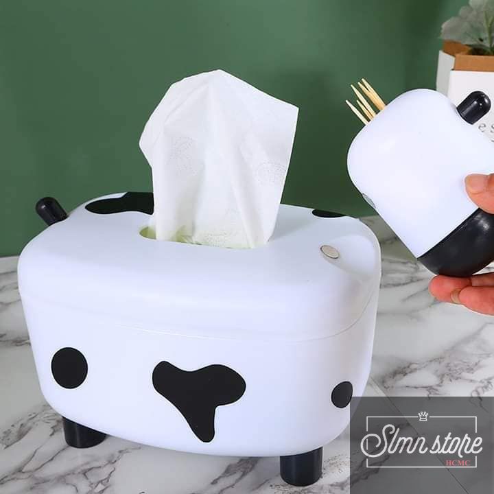 Thông tin sản phẩm :Hộp đựng giấy ăn kèm đựng tăm 2in1 Bò Sữa