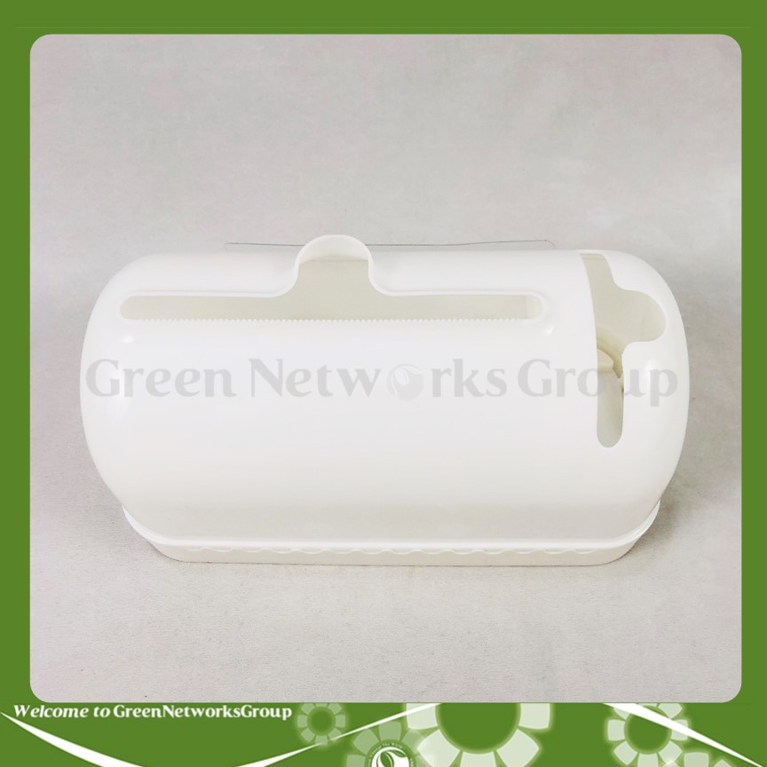 Hộp khăn giấy kèm giá đỡ điện thoại loại 2 ngăn nhựa màu trắng Greennetworks