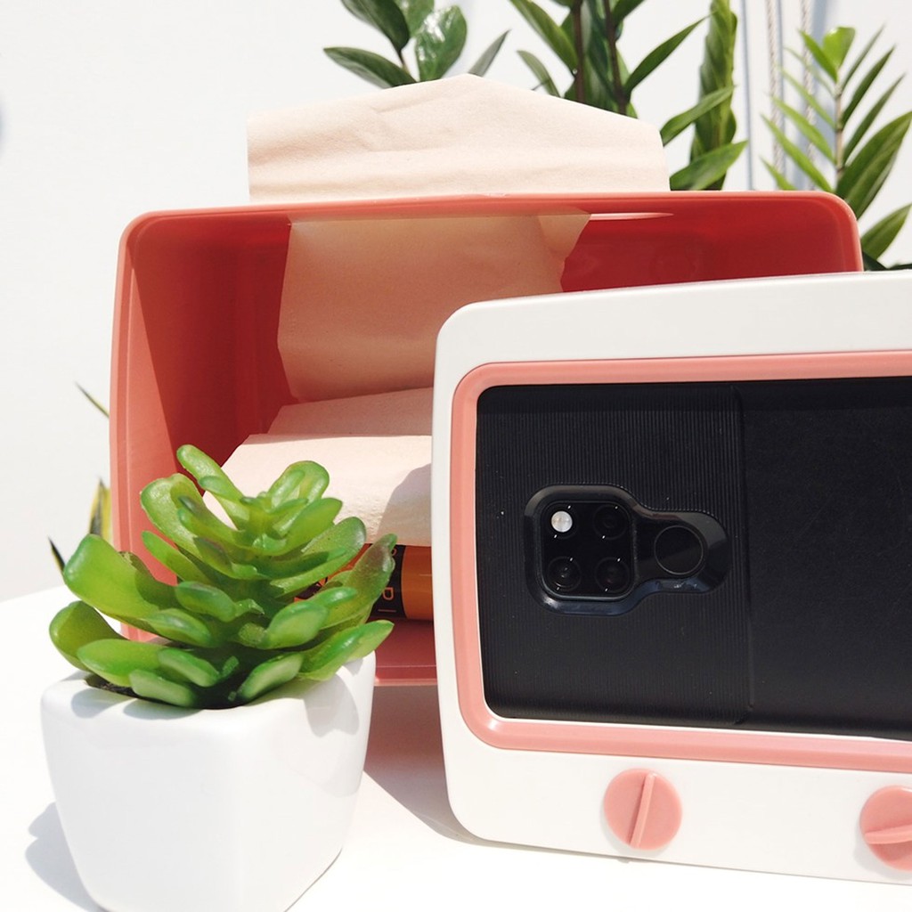 Không Chỉ Là Hộp Đựng Giấy Mà Còn Là Giá Đỡ Điện Thoại Luôn• Với thiết kế mới kết hợp giữa hộp đựng khăn giấy và giá đỡ điện thoại vô cùng tiện lợi