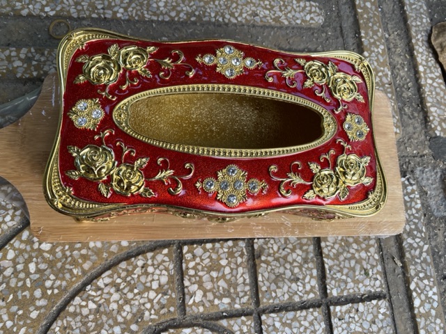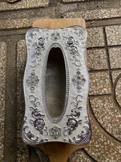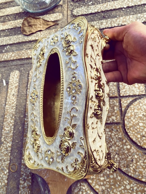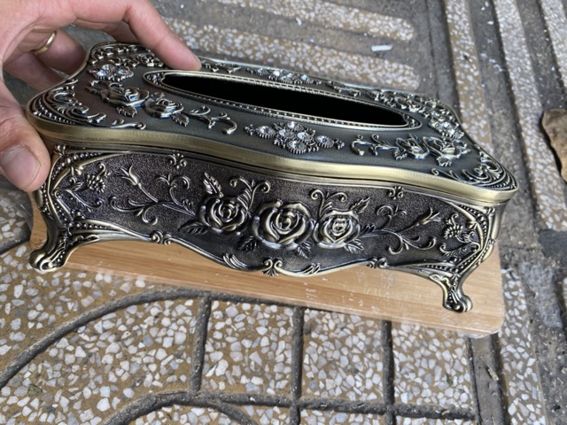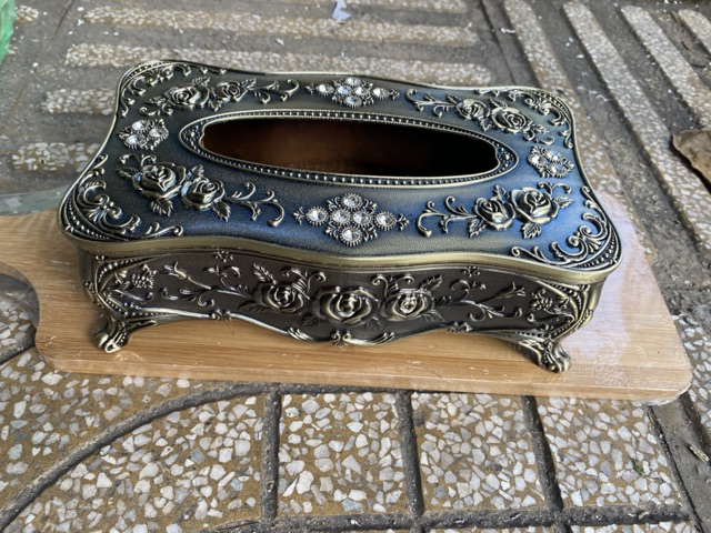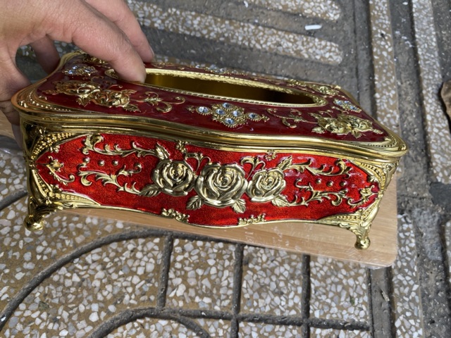 - Hộp đựng giấy ăn hợp kim được trang trí hoa văn tinh xảo mang tính nghệ thuật cao mang phong cách cổ điển Châu Âu.