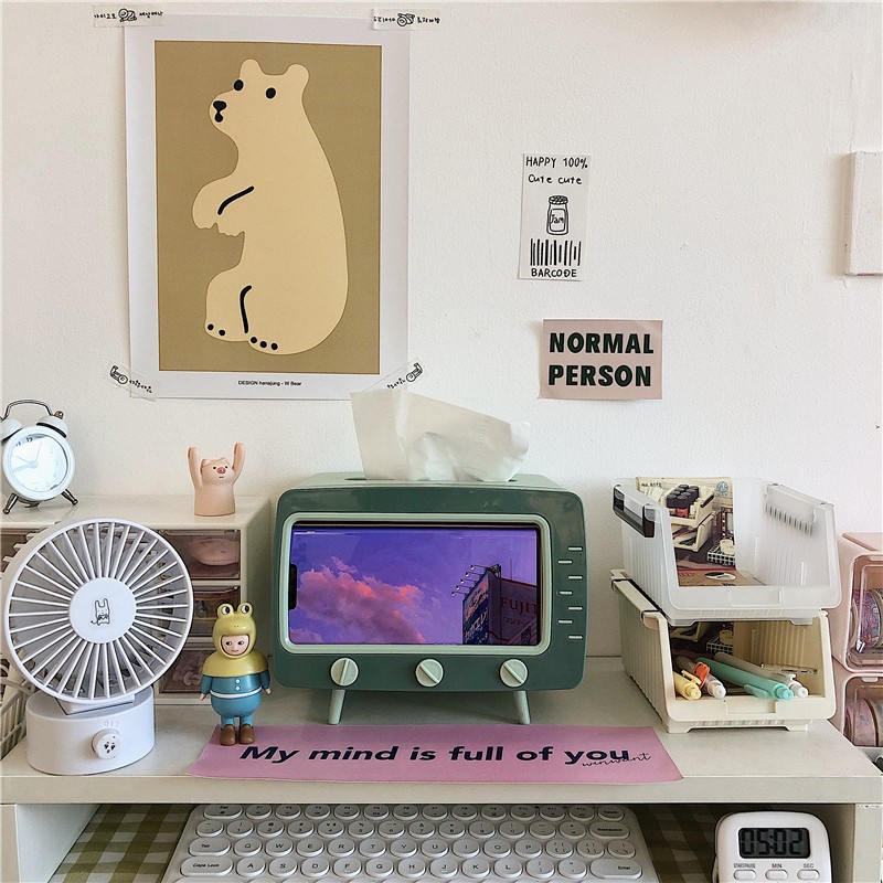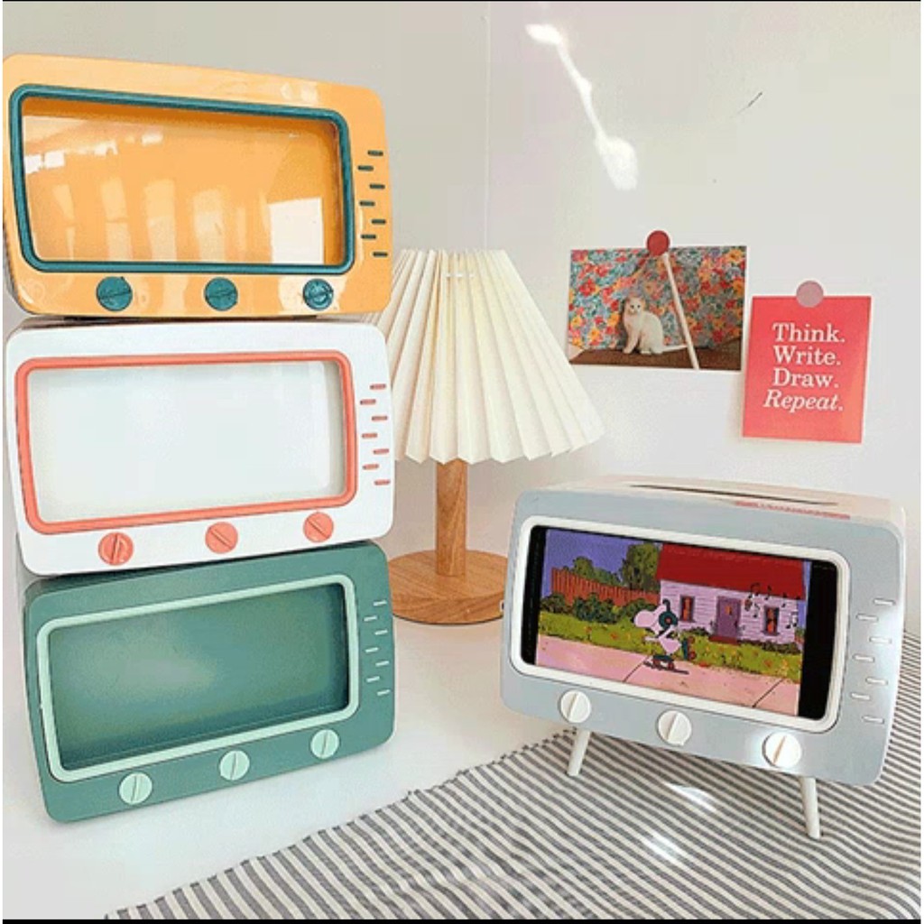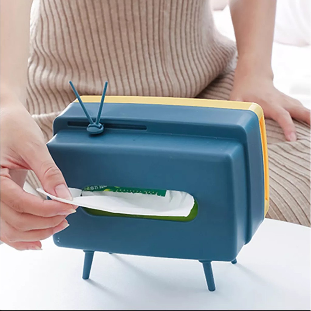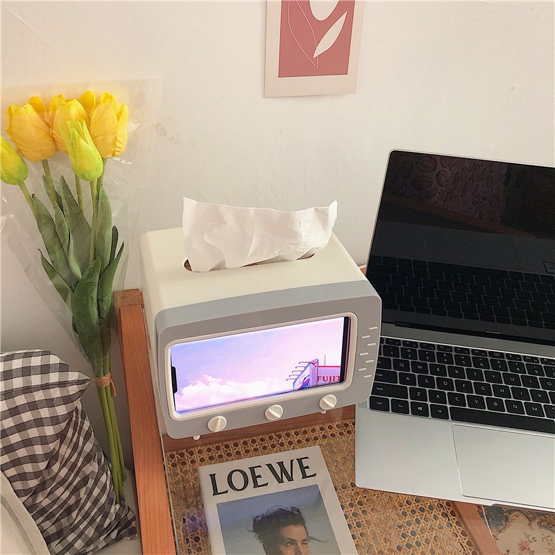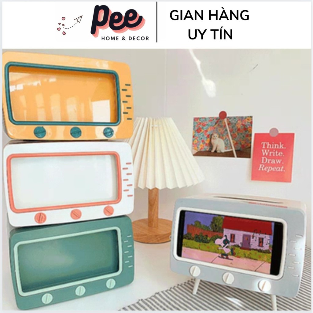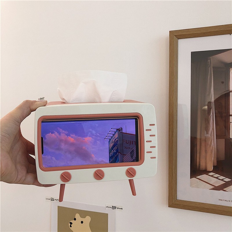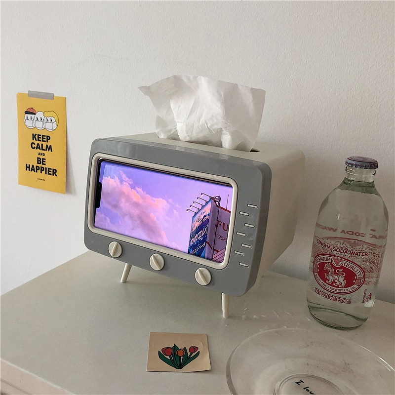 Nhà cửa & Đời sống > Sắp xếp nhà cửa > Hộp khăn giấy || Hộp khăn giấy tivi có khe để điện thoại sắp xếp trang trí nhà cửa gọn gàng - PeehomedecorCòn hàng
