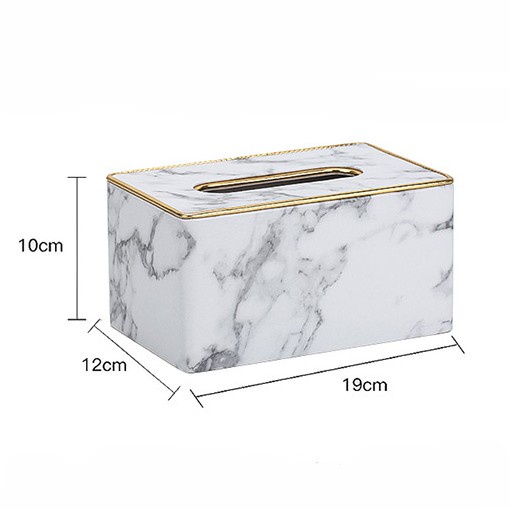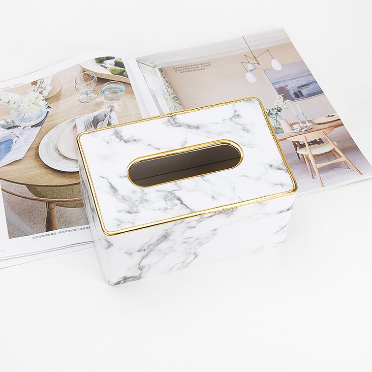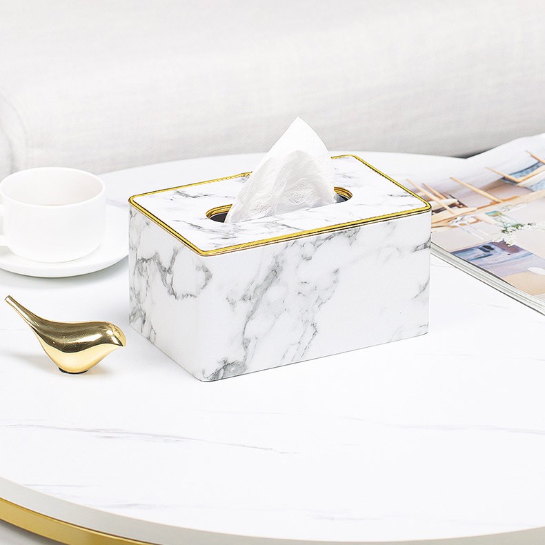 Nhà cửa & Đời sống > Sắp xếp nhà cửa > Hộp khăn giấy || Hộp Khăn Giấy Trang Trí Bàn Ăn Da Vân Đá Marble Viền Vàng Gold Sang Trọng Màu TrắngCòn hàng