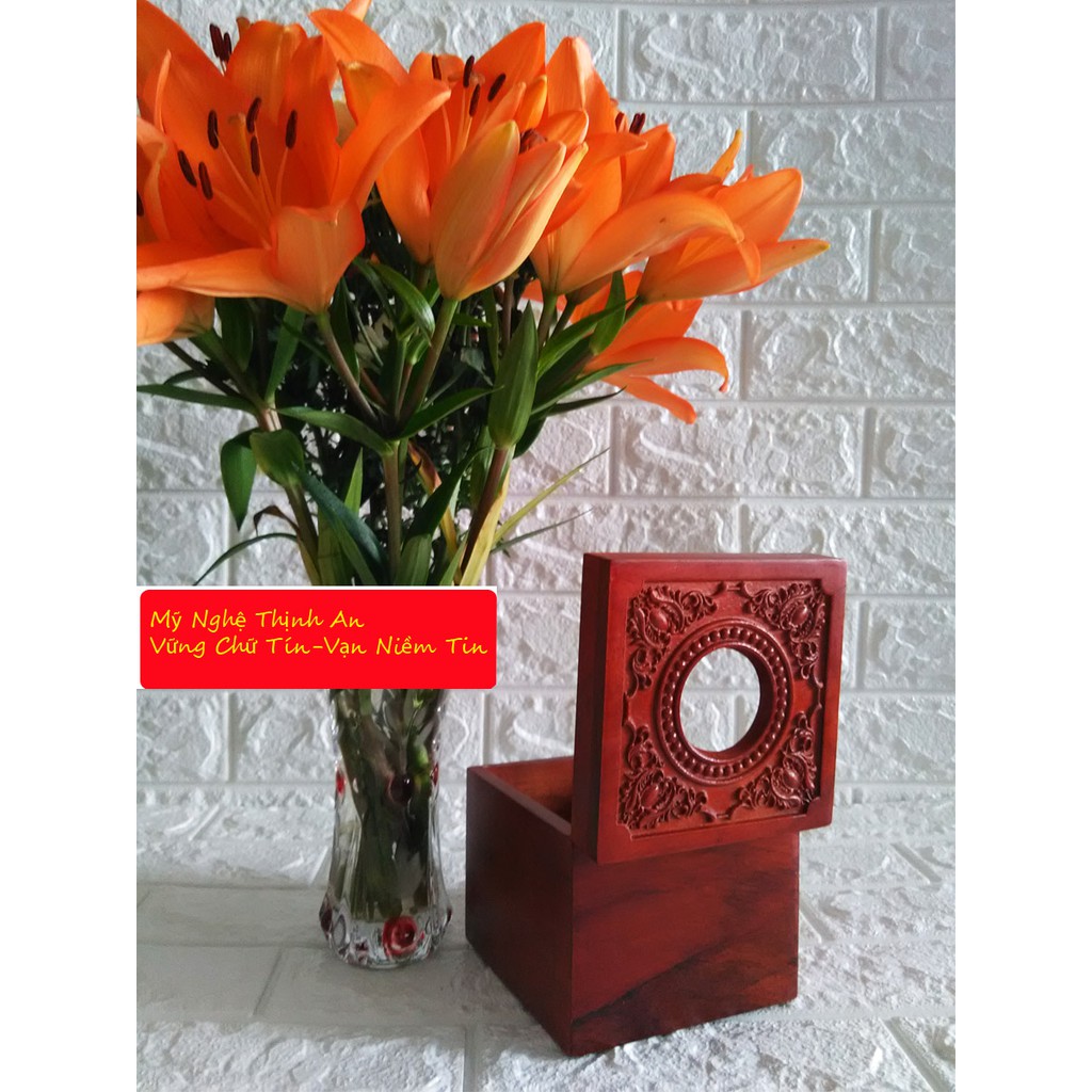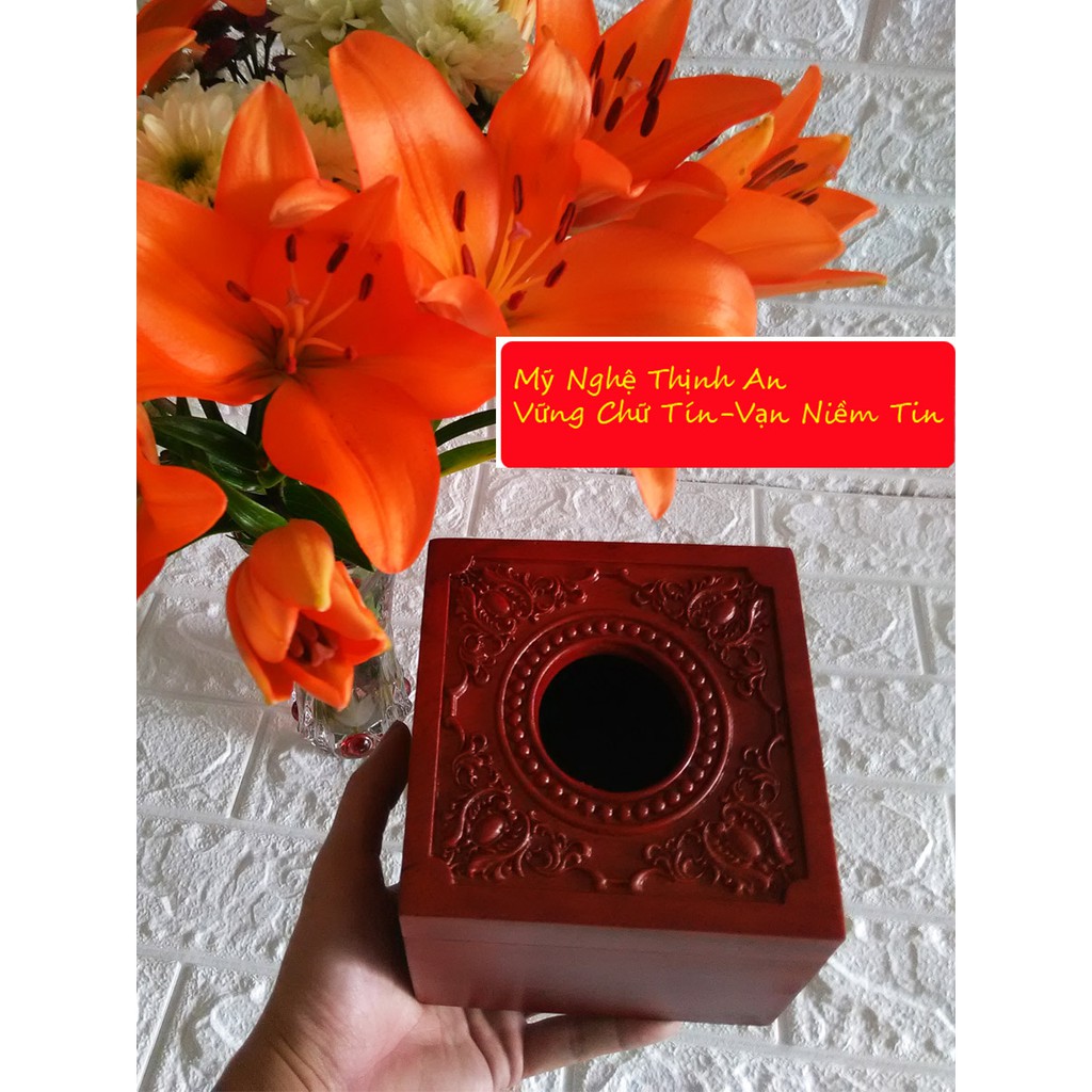Nhà cửa & Đời sống > Sắp xếp nhà cửa > Hộp khăn giấy || Hộp khăn giấy vuông bằng gỗ hương đỏ cao cấp mặt trạm hoa văn cổ điển HGVT13Còn hàng
