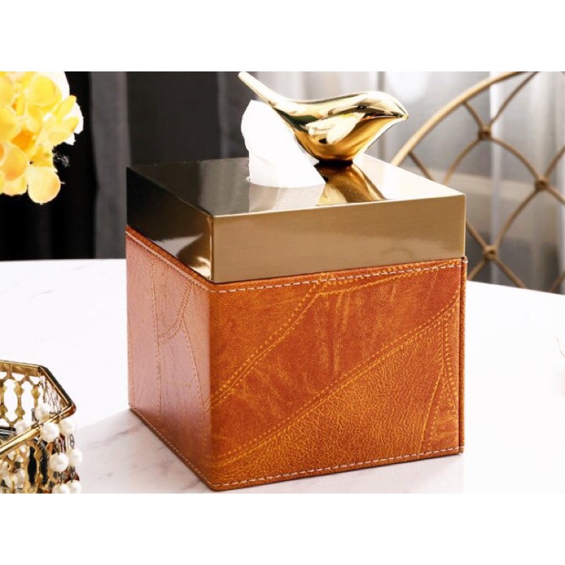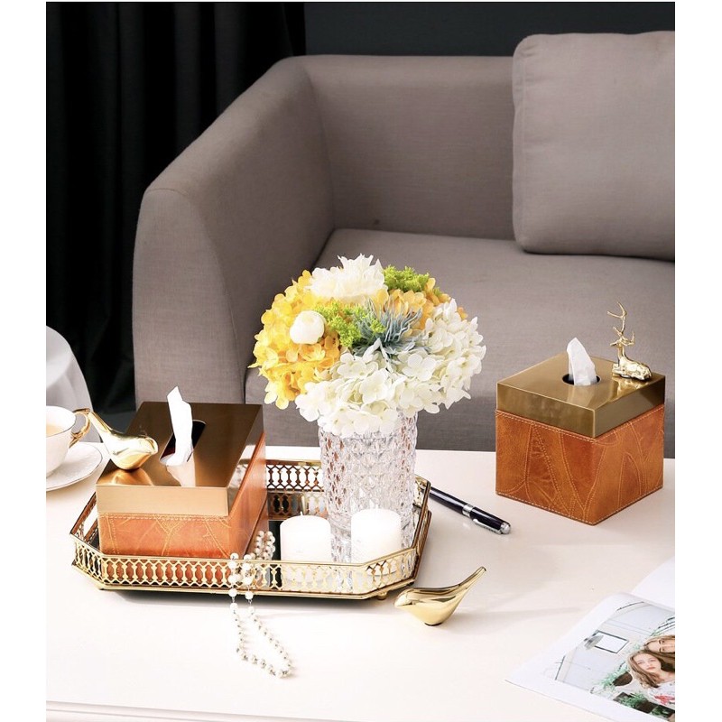 💢 Hộp giấy ăn cao cấp bằng da lót nhưng nắp vàng đồng cao cấp vừa phù hợp với phong cách trang trí Bắc Âu, nội thất hiện đại hay cổ điển đều rất hợpChất liệu: Da + lót nhung + nắp kim loại mạ vàng