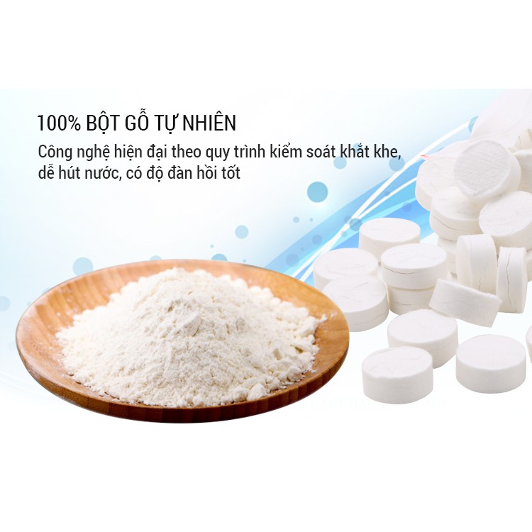Bạn chỉ cần cho viên nén vào nước, chưa đến 2 giây viên nén sẽ nở ra thành 1 chiếc khăn và các bạn có thể sử dụng vào rất nhiều việc khác nhau. Khăn rất dai và bền cho thời gian sử dụng lâu dài. Hình dạng viên tròn 1 x 2 cm sau khi cho vào nước nở thành khăn kích thước 22 x 24 cm.
