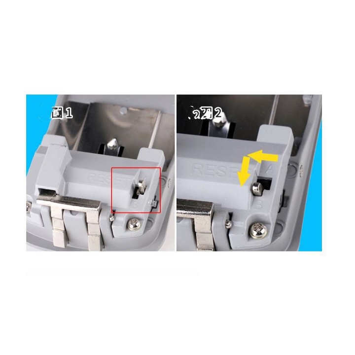 - Gạt lẫy RESET từ vị trí A sang B để thay mật khẩu mới