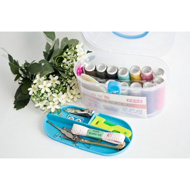 🍀 Bao gồm: 10 cuộn chỉ màu, 01 hộp kim các loại, 01 lấy ráy tai, 01 kéo cắt chỉ, 01 thước dây, 10 kim băng, 2 cúc bấm.