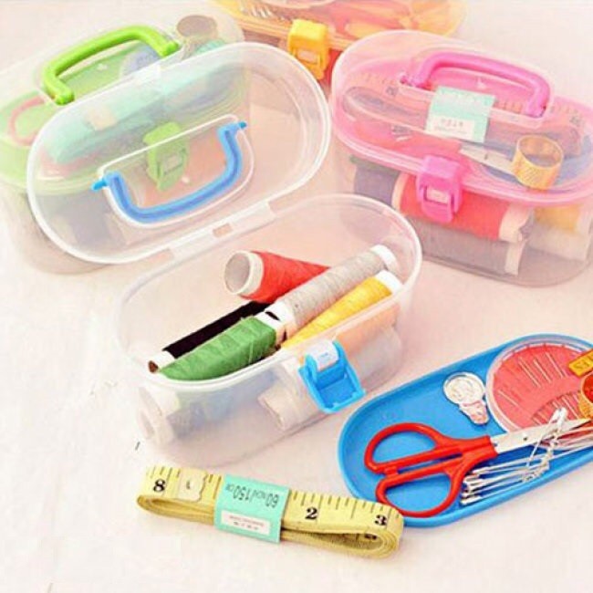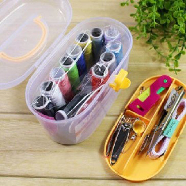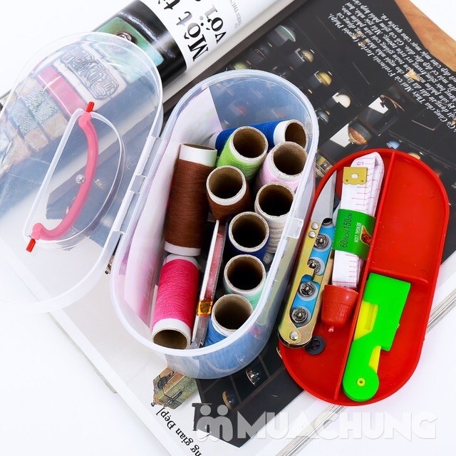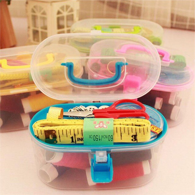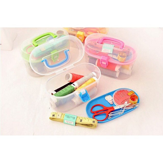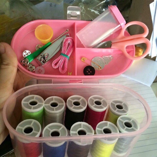 🍀 Bao gồm: 10 cuộn chỉ màu, 01 hộp kim các loại, 01 lấy ráy tai, 01 kéo cắt chỉ, 01 thước dây, 10 kim băng, 2 cúc bấm.