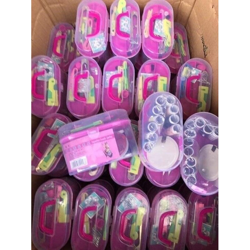 👉🏻 Bao gồm: cuộn chỉ các màu, kim các loại, kéo cắt chỉ, thước dây, dụng cụ xỏ chỉ, kim băng, cúc bấm, dụng cụ lấy ráy tai, nhẫn ấn kim, hộp nhựa.