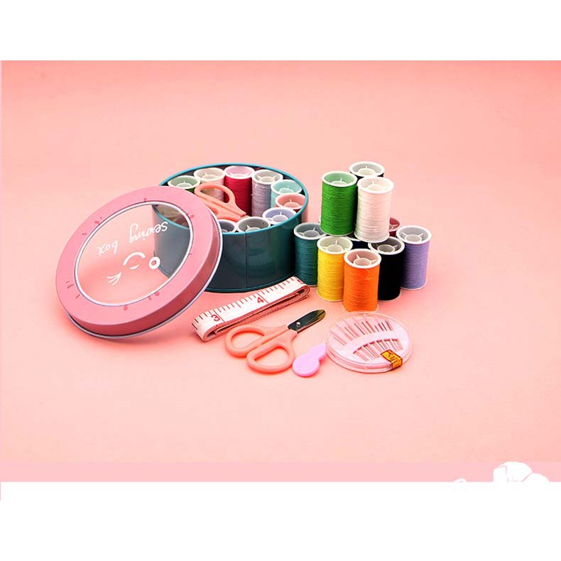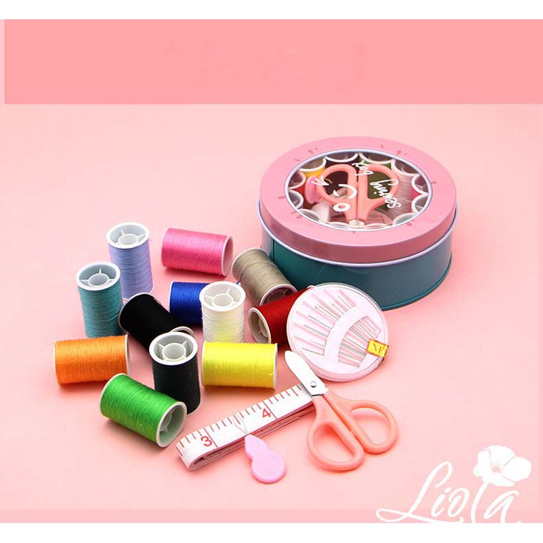 Bộ hộp kim chỉ đa năng - Gồm 12 cuộn chỉ, kim, kéo, thước dây