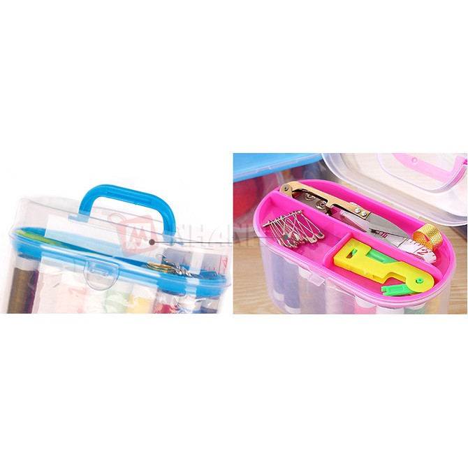 + Bao gồm: 12 cuộn chỉ màu, 01 hộp kim các loại, 01 kéo cắt chỉ, 01 thước dây, 01 dụng cụ xỏ chỉ, kim băng, cúc bấm, 01 bấm móng tay, 01 dụng cụ lấy ráy tai, 01 nhẫn ấn kim