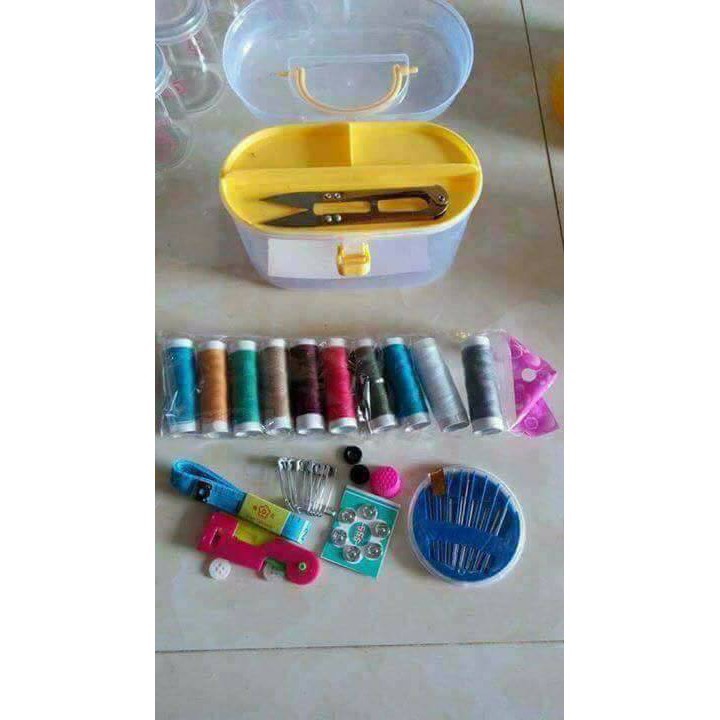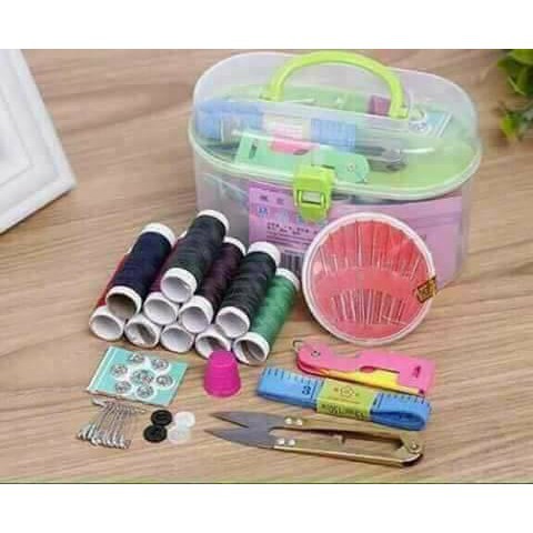 🍀 Bao gồm: 10 cuộn chỉ màu, 01 hộp kim các loại, 01 lấy ráy tai, 01 kéo cắt chỉ, 01 thước dây, 10 kim băng, 2 cúc bấm.
