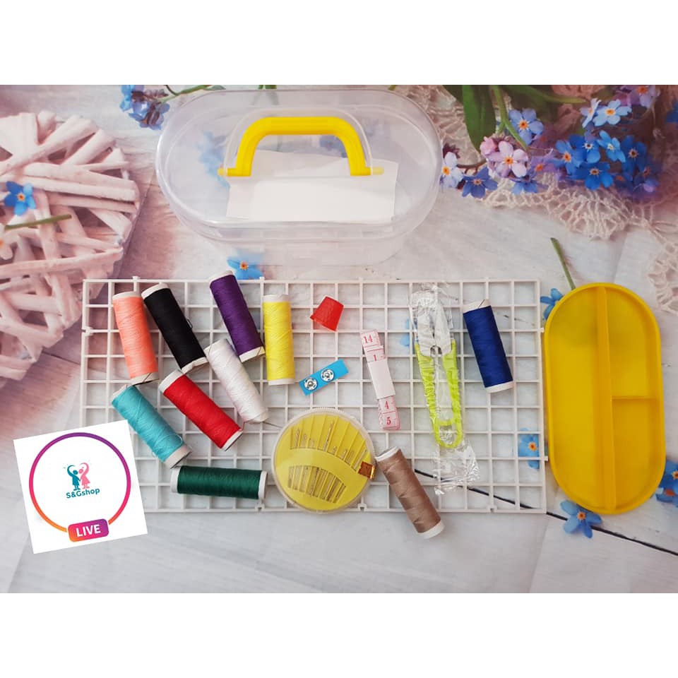 ✅ Bộ sản phẩm gồm: 10 cuộn chỉ màu, 1 hộp kim các loại, 1 kéo cắt chỉ, 1 thước dây, 10 kim băng, 2 cúc bấm,...✅ Chất liệu: Hộp nhựa có tay xách