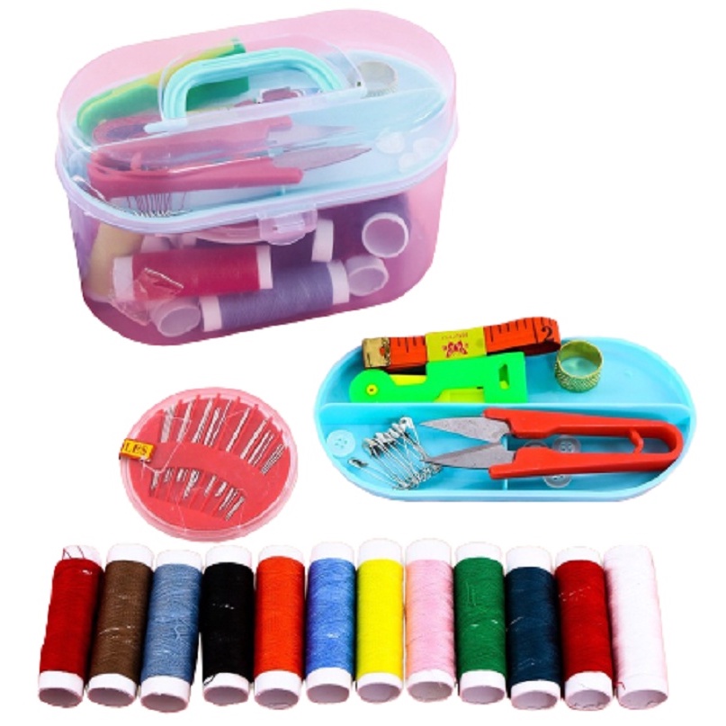 ✯ Bao gồm: 10 cuộn chỉ màu, 01 hộp kim các loại, 01 lấy ráy tai, 01 kéo cắt chỉ, 01 thước dây, 10 kim băng, 2 cúc bấm.