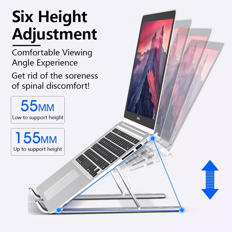 Máy tính & Laptop > Linh Kiện Máy Tính > Quạt và Tản Nhiệt || Hợp kim nhôm Chân đế máy tính xách tay sáu điều chỉnh độ cao Trọng lượng nhẹ Thiết kế tản nhiệt rỗng cho xách tay - NBN3Còn hàng