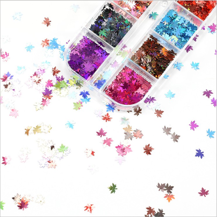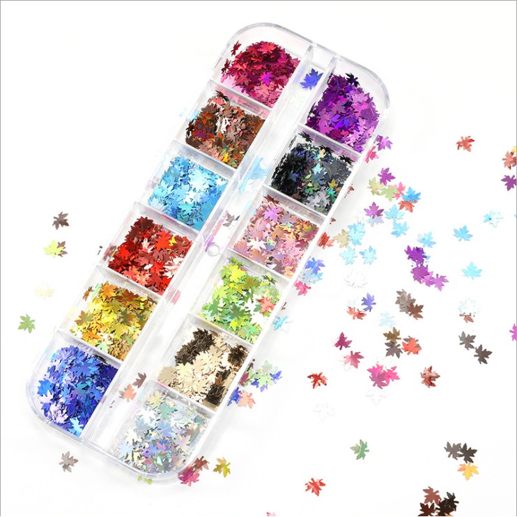 Hộp kim tuyến hình lá phong 12 màuTrọng lượng sản phẩm: 30G