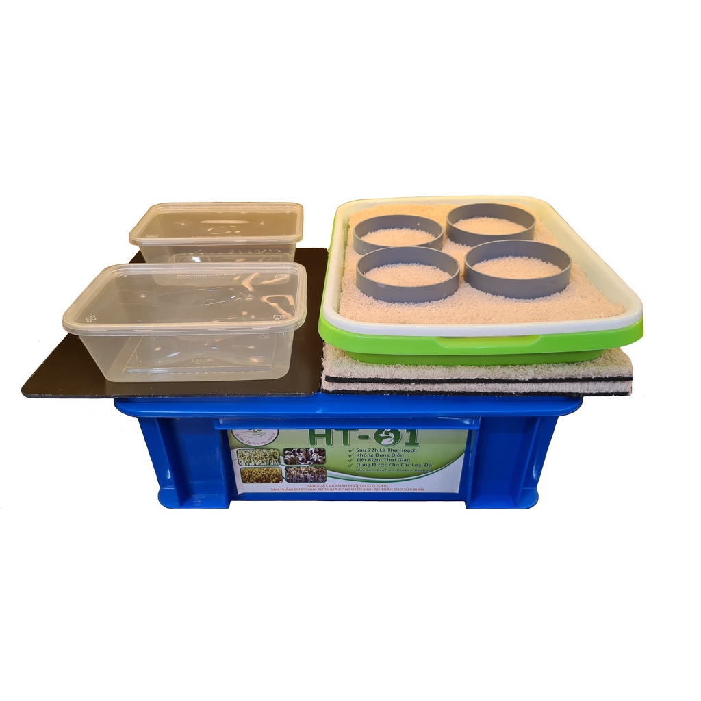 - 2 hộp nhựa dung tích 750ml sử dụng để ngâm đỗ, chứa nước để nén giá phát triển, khi thu hoạch dùng để chứa giá lưu trữ trong tủ lạnh sử dụng lâu dài