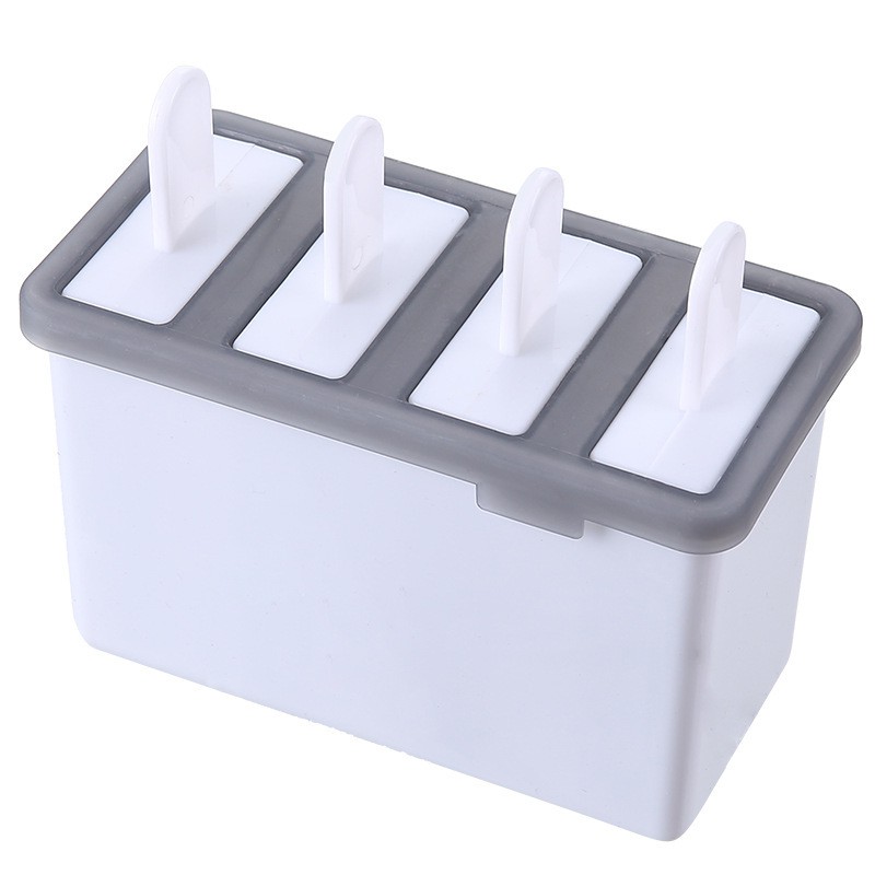 Hộp làm kem, khuôn làm kem que 4 ngăn hình chữ nhật tiện dụng làm tại nhà (có sẵn 4 que kèm theo)