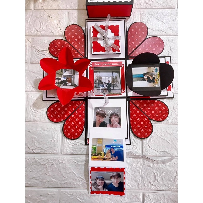 Hộp quà tình yêu tone màu đỏ tương trưng cho tình yêu này được khách rất chuộng ở shop. Mẫu 11cm mở ra 33x33cm được shop tặng in 20 ảnh và dán hoàn thiện cho khách nha☺️ Ngoài ra shop có thêm chữ ở nắp theo ý khách để món quà trở nên ý nghĩa nhất ạĐể gửi ảnh bạn vui lòng gửi mẫu và 20 ảnh qua zalo này nha 0869233696