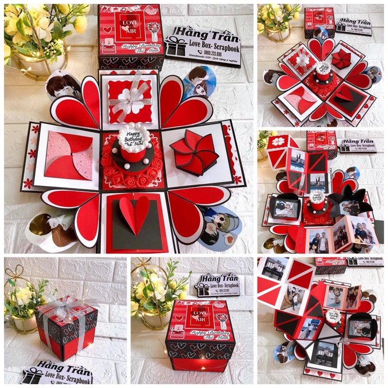 Hộp love box màu đỏ - Tặng in 25 ảnh (zalo gửi ảnh 0869233696)