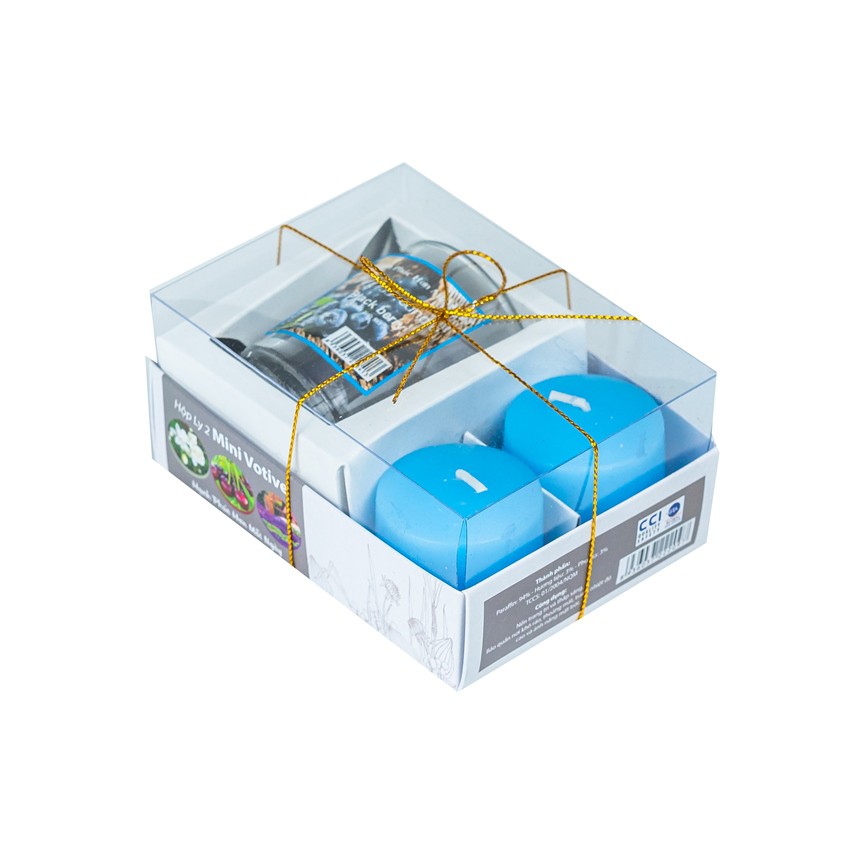 THÔNG TIN SẢN PHẨMHộp ly 2 nến thơm mini votive Miss Candle NQM2097 (Xanh da trời)