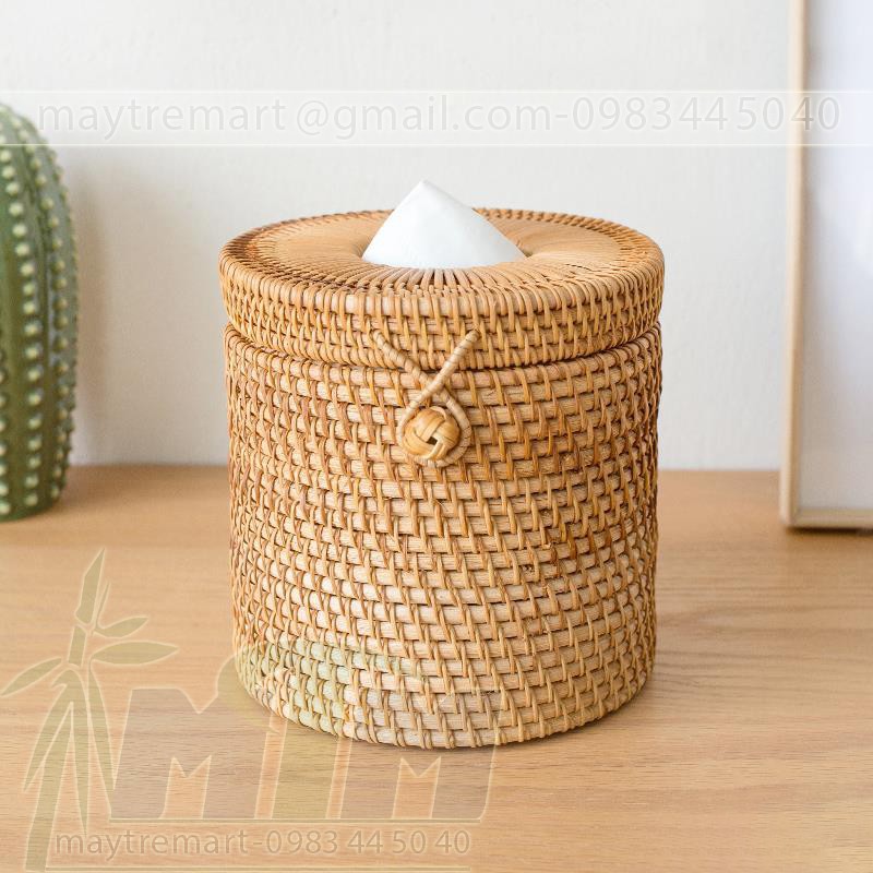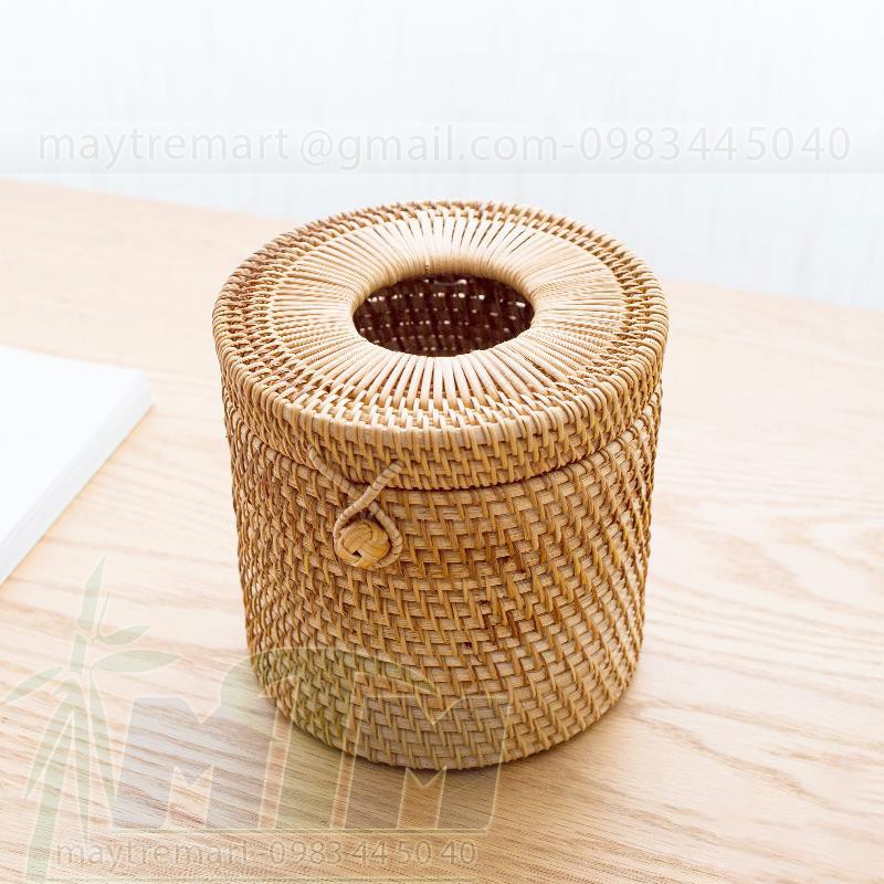 Hộp mây tròn đựng khăn giấy 15cm cao 13cm