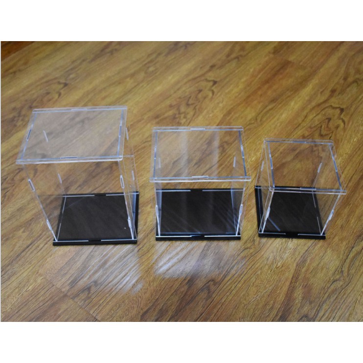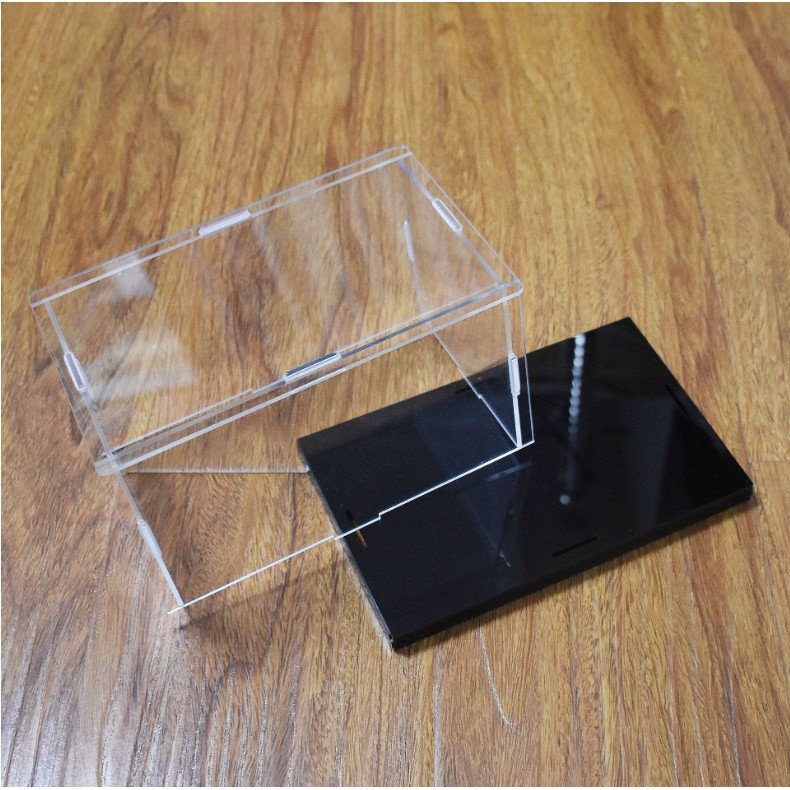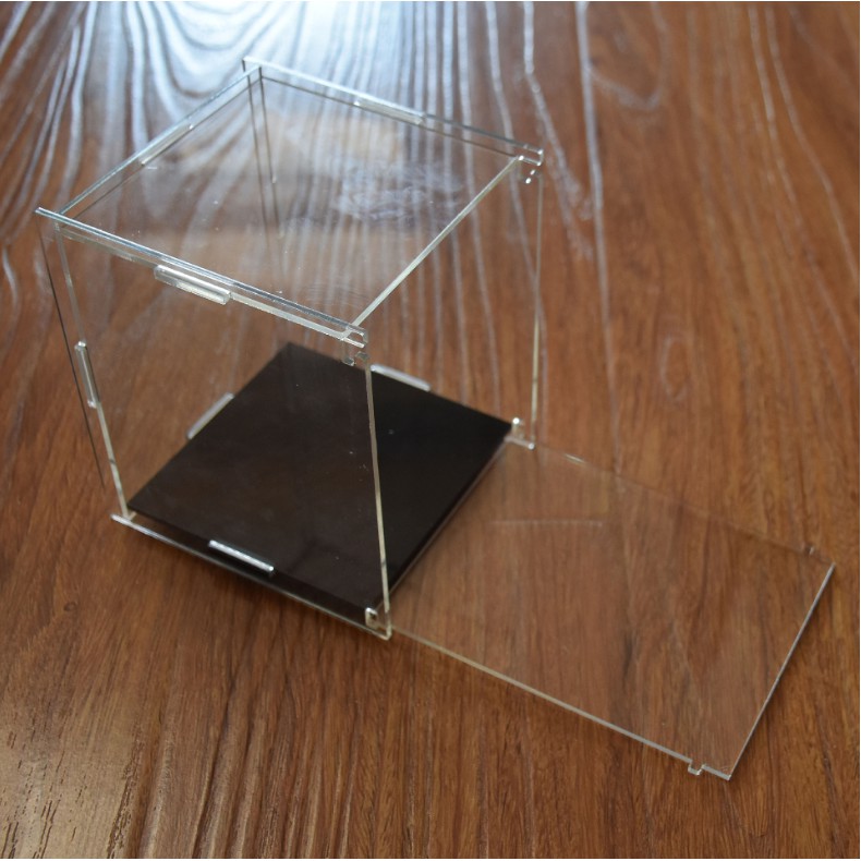 Kích thước sản phẩm tương ứng là Dài x Rộng x Cao.Hộp có đế nhựa ABS đen chắc chắn, dầy dặn. Mặt kính mika 4 phía là loại cao cấp, cắt các mộng ghép bằng máy CNC độ chính xác cao. Sau khi lắp các mặt vào khớp, có dây silicone để chốt chặn, đảm bảo hộp chắc chắn.