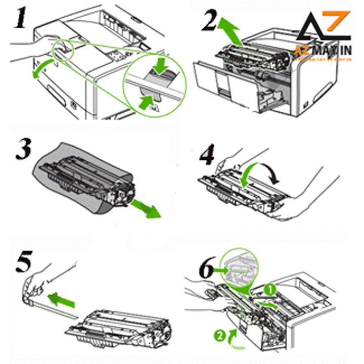Bước 1: Mở nắp máy in và lấy hộp mực cũ đã hết mực hoặc hư hỏng ra khỏi máy.
