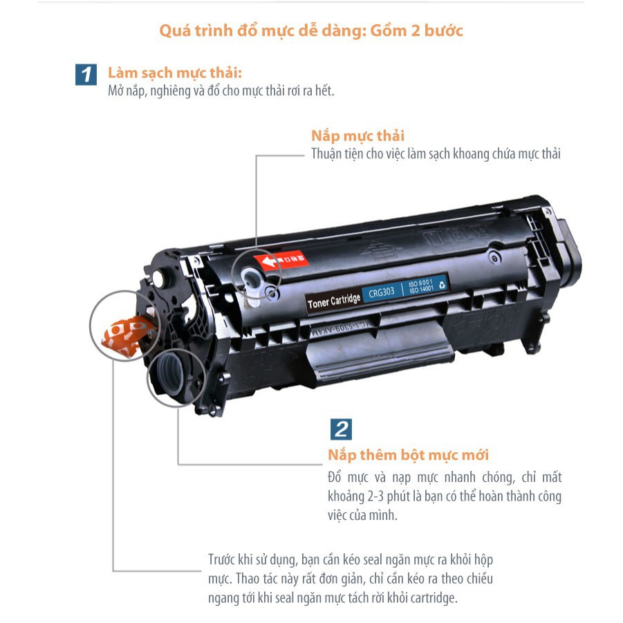 Máy tính & Laptop > Máy In & Máy Scan > Mực In & Khay Mực || Hộp mực dùng cho máy in LBP 2900 CÓ LỔ ĐỔ MỰC, XẢ THẢI - MÃ 12A/303Còn hàng