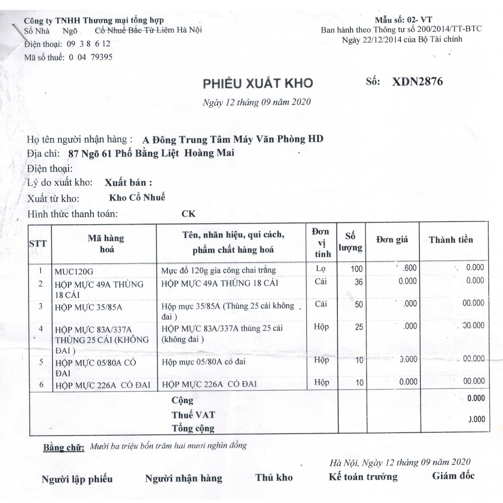 - bán tại: Cty TNHH Thương Mại dịch vụ văn phòng HOÀNG PHÁT