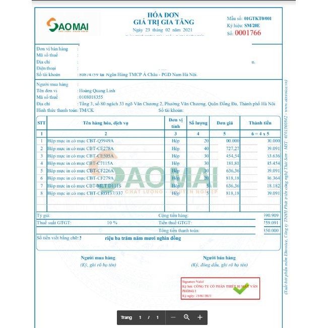 Máy sử dụng: CANON 3300, Máy in HP 1160, 1320 (Q5949A/CRG308)
