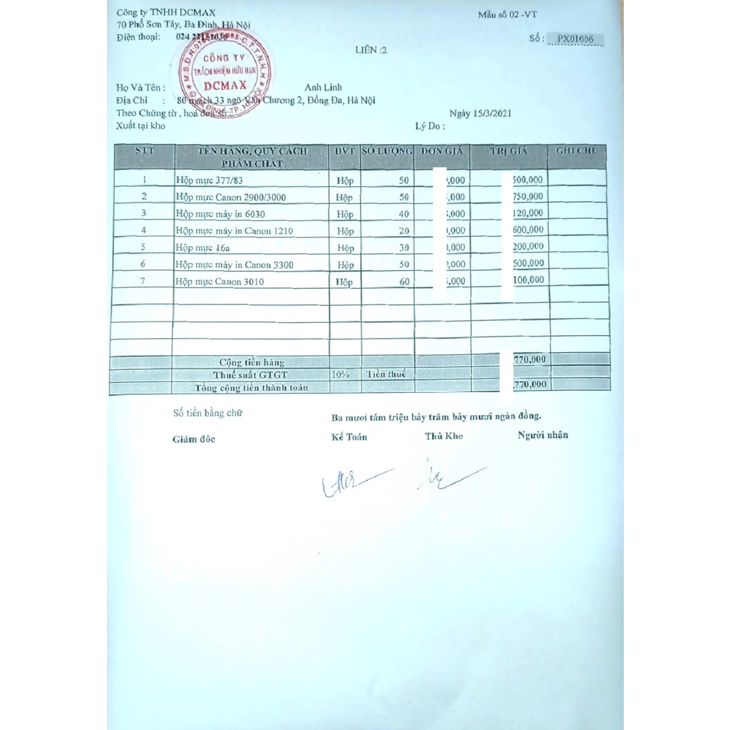 Sản phẩm có thể in lên tới 1.400 trang độ phủ 5% .