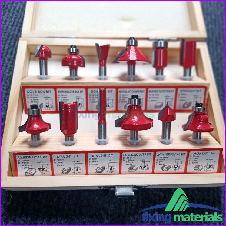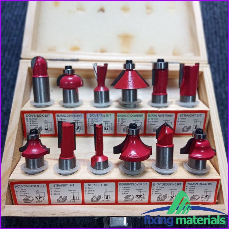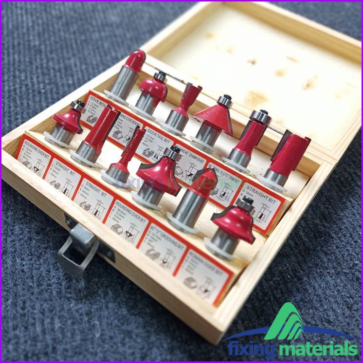 Bộ mũi phay gỗ 12 chi tiết, Tên gọi thông dụng : mũi phay gỗ, dao phay gỗ, mũi router)Đây là dòng mũi ở phân khúc phổ thông được nhiều khách hàng lựa chọn sử dụng hiện nay nhờ vào chất lượng khá ổn so với giá thành của nó.